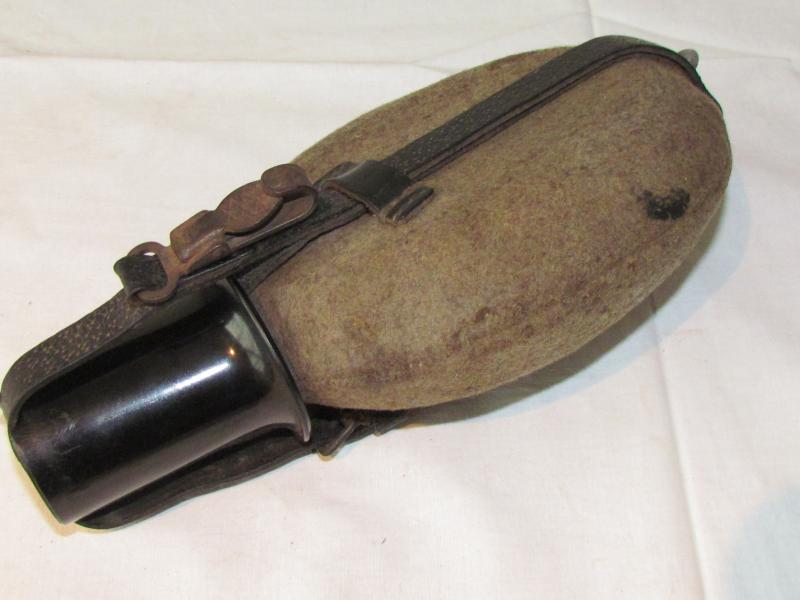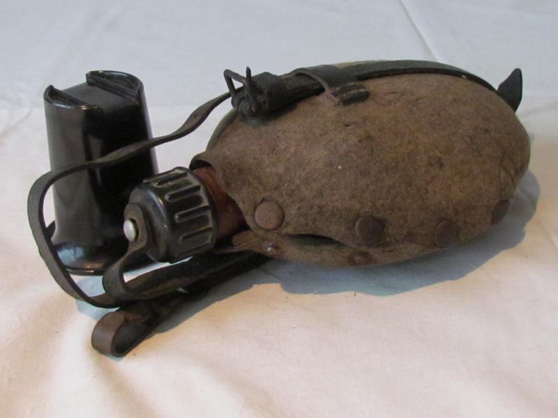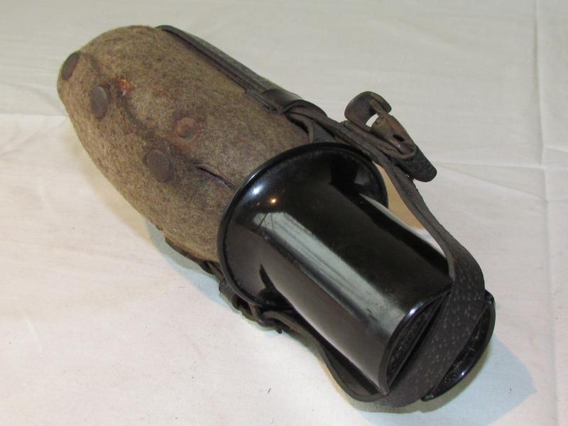 Nice used canteen with black bakelite cup The bottle iitselve has red paint and has no damage whatsoever! A very nice piece that fits in any display!