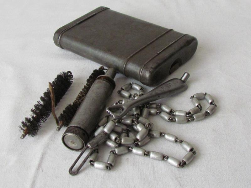 A very nice RG34 cleaning kit which was standard issue for every german soldier in WW2. All the components are in the kit and are all marked KY 1937. Matching and in nicely used condition!