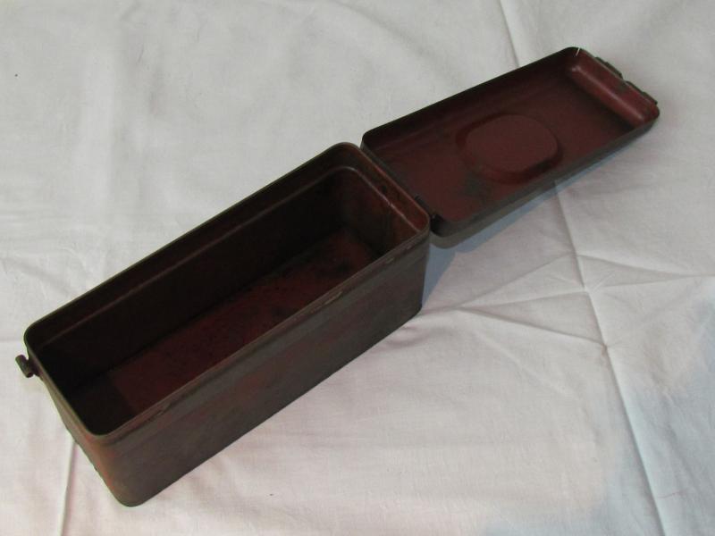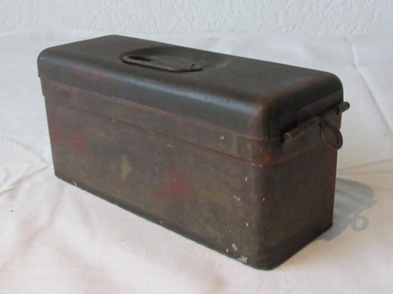 A very nice MG34/MG42 small tool box with dark blue paint on the outside and red coating on the inside! The box is in worn condition and has defintly seen some action!