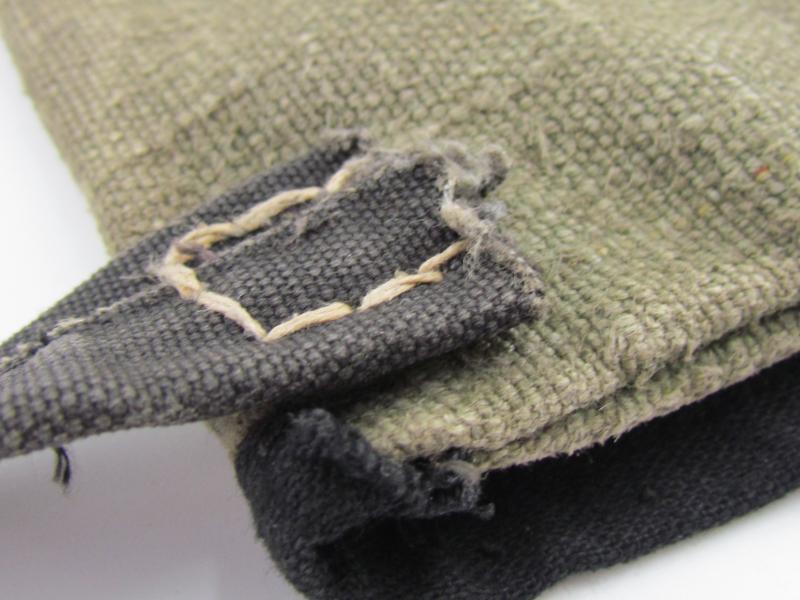 The black carrying strap material is the same as seen on many late war bags and the Grey material of the pouch has a red canvas line in it as often seen on the MP44 pouches ( see pictures ).