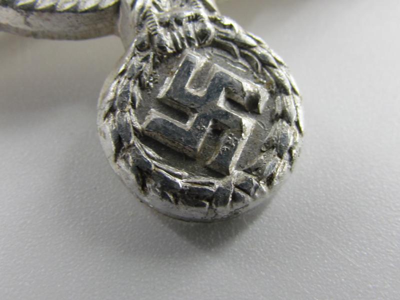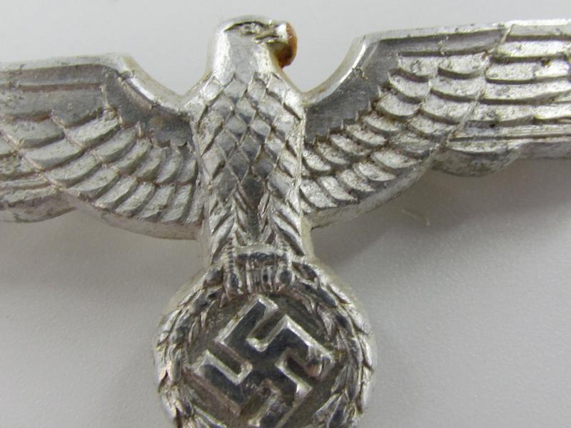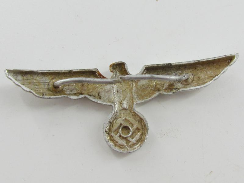 A very nice Wehrmacht Heer visor cap eagle in slightly used condition. The eagle retains its original 2 pins and has no damage anywhere. Would be great for a badge collection or to restore a Schirmmutze.