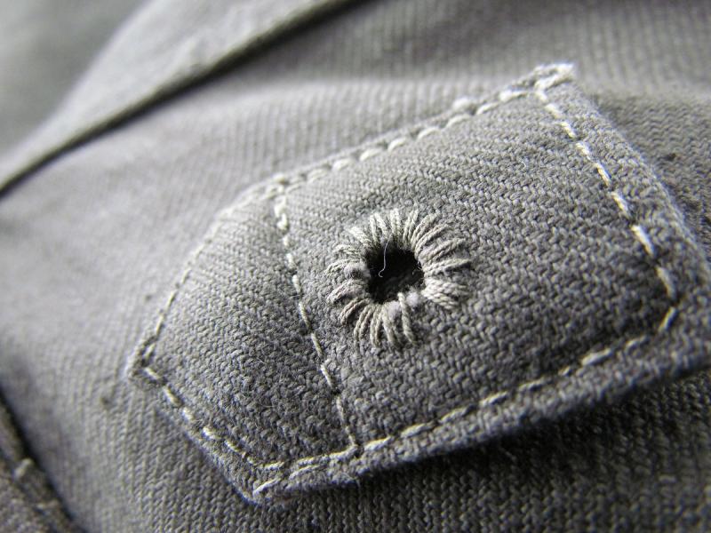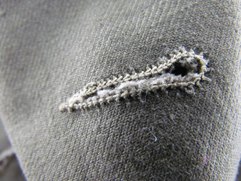 The tunic shows no wear, has staples from the factory tag on the inside and has some features that show it was not finished before leaving the factory!
