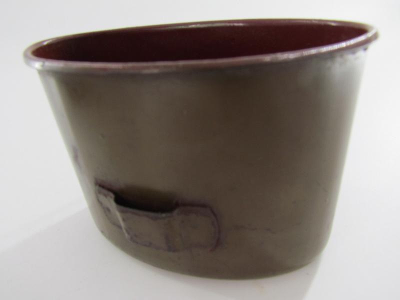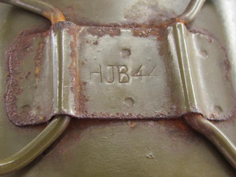 A great original steel canteen cup marked HJB44. It still has most of its original paint and shows some light rust spots. Simply a great cup that would finish every canteen.
