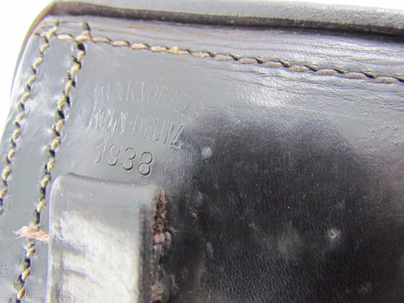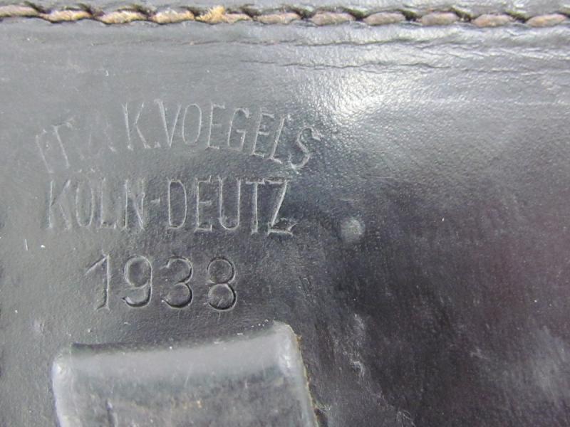 This supple leather holster is maker marked and dated on the rear with: FR & K. VOEGELS KÖLN - DEUTZ 1938