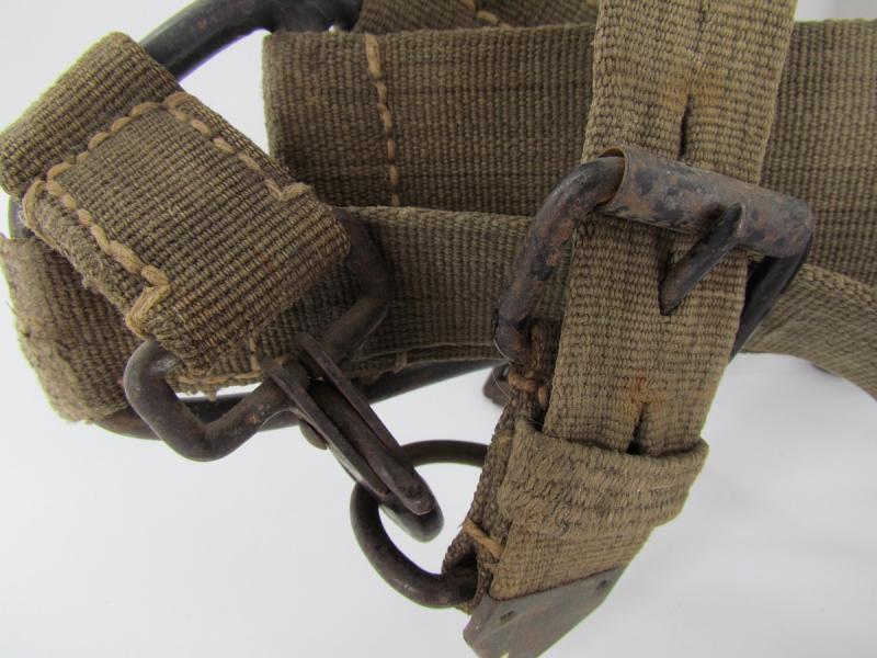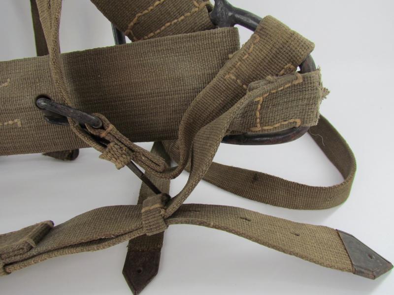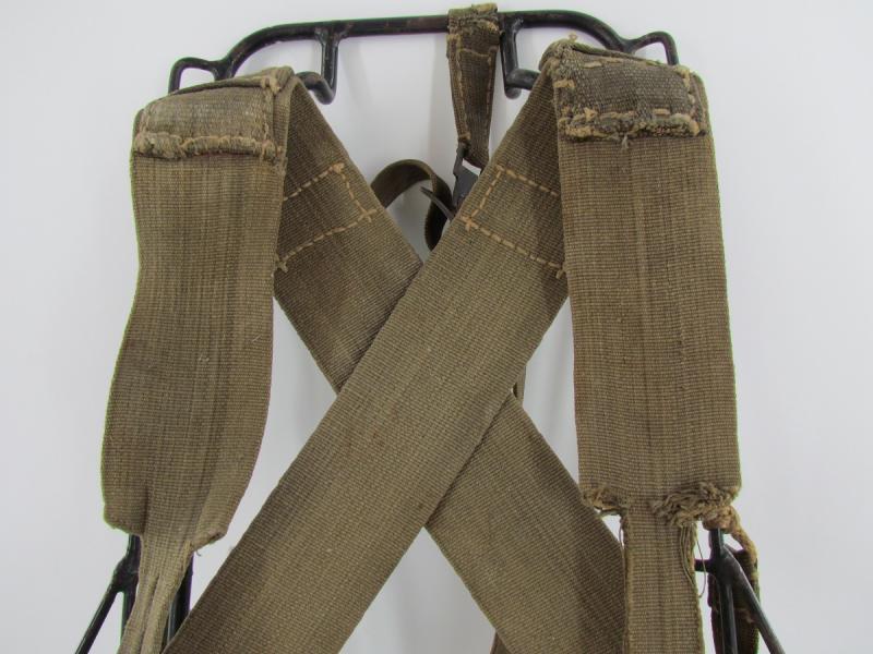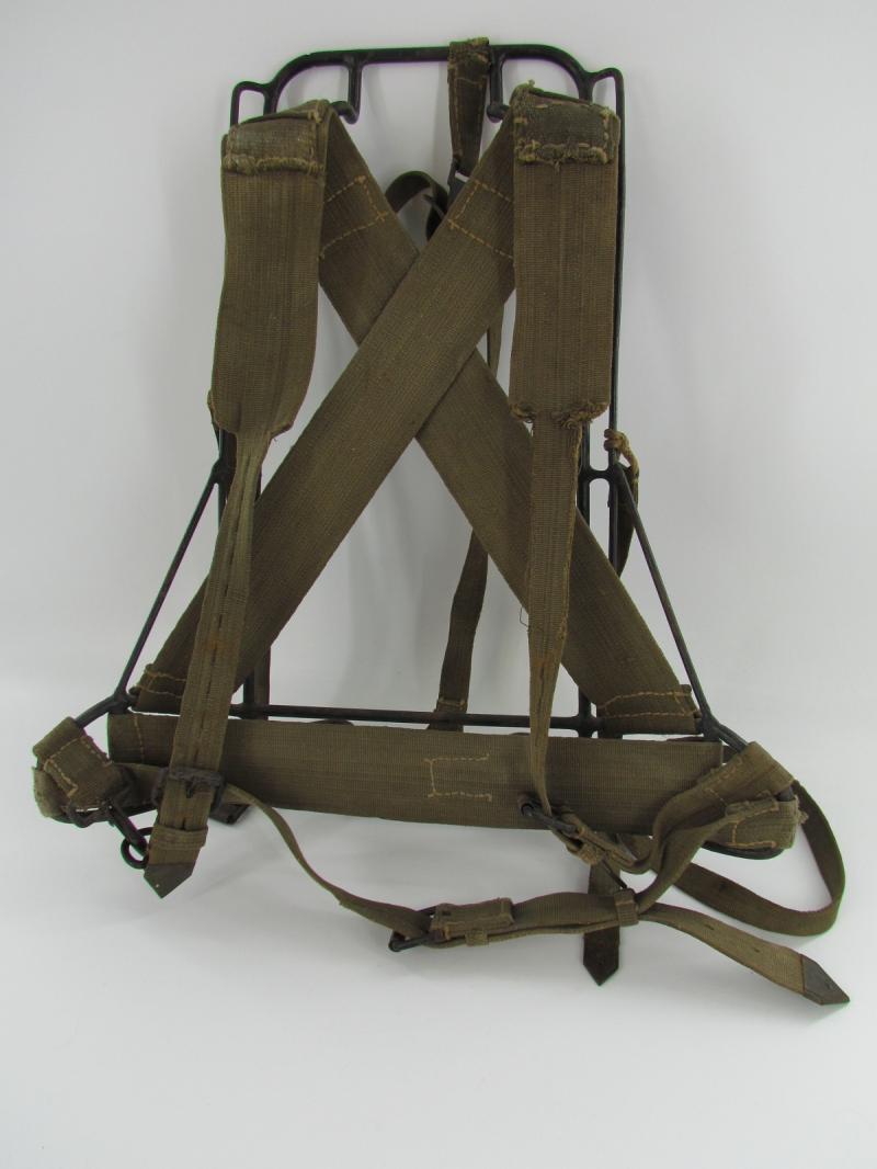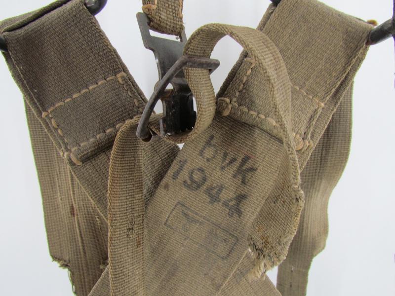 Wehrmacht M43 Tragegestell. Metal frame with original paint. Webbing material straps and belts. Ink stamps Marked bvk1944 Partially a little damage to the webbing parts Please see pictures for more details.