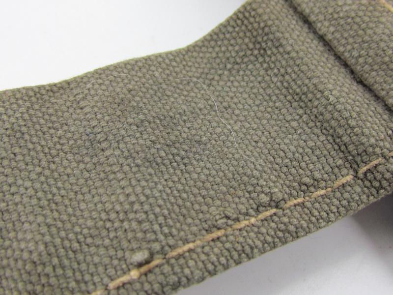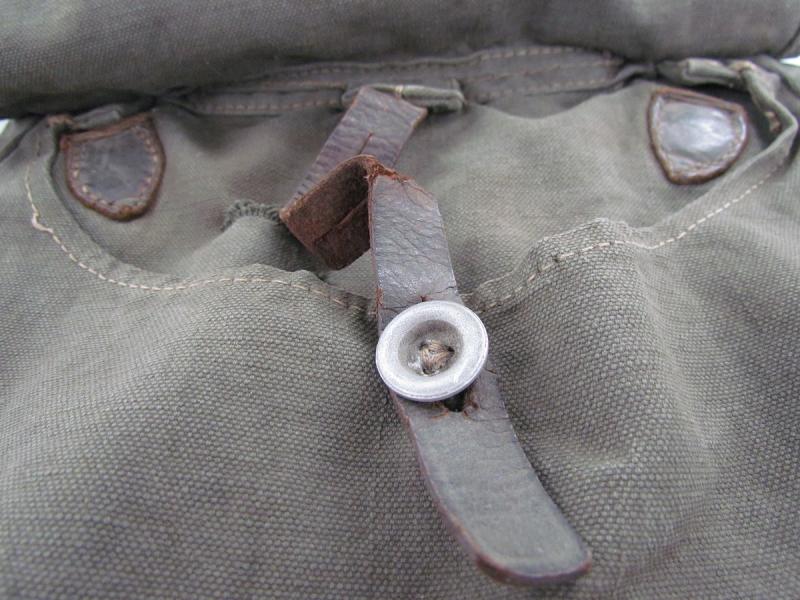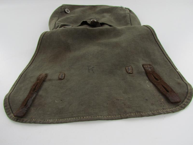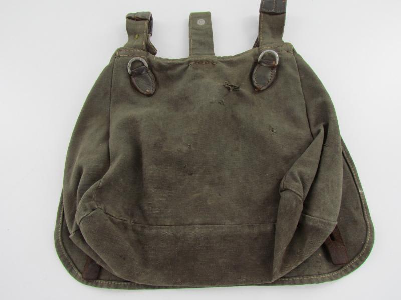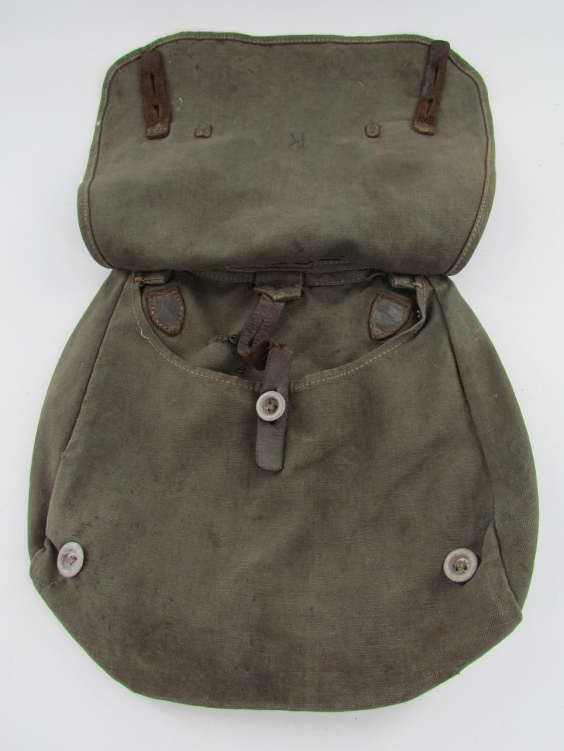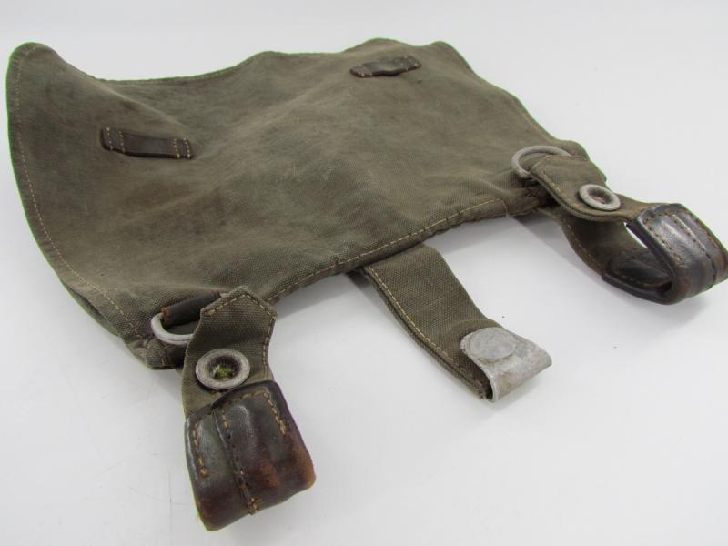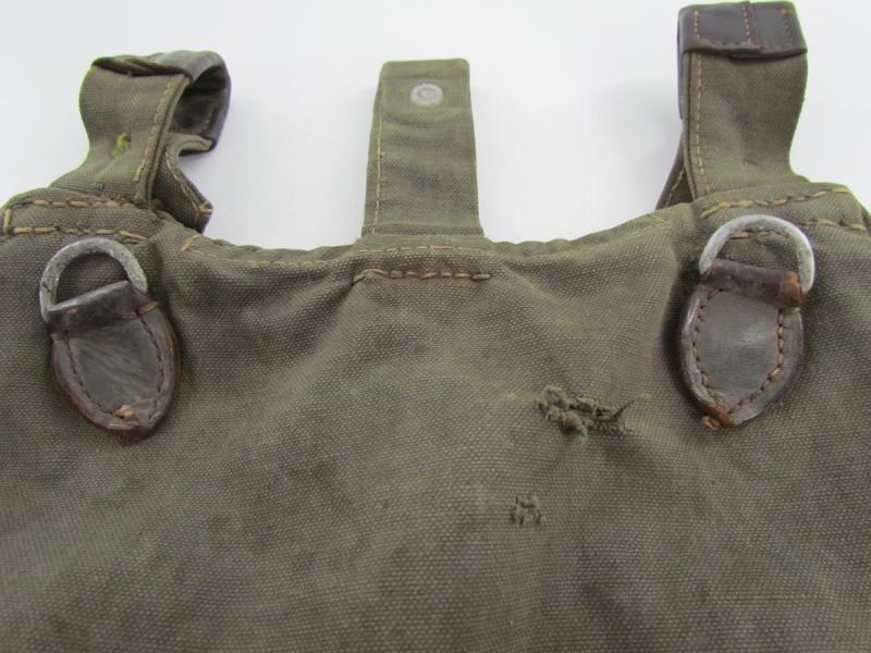 Nice used early WH/SS M31 breadbag. With early aluminium parts and leather re-enforcing leather on the belt loops. Maker marked inside but hard to read.