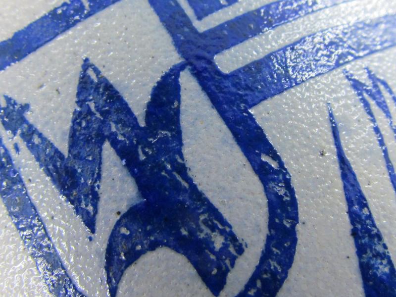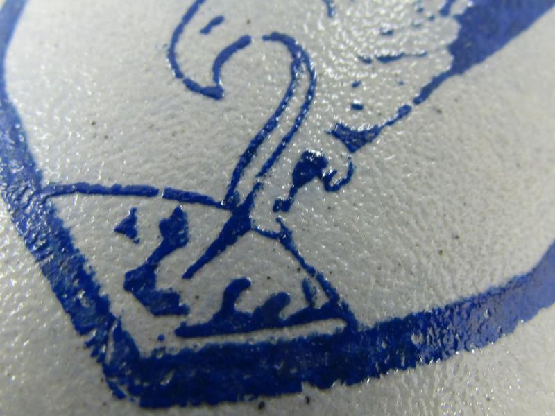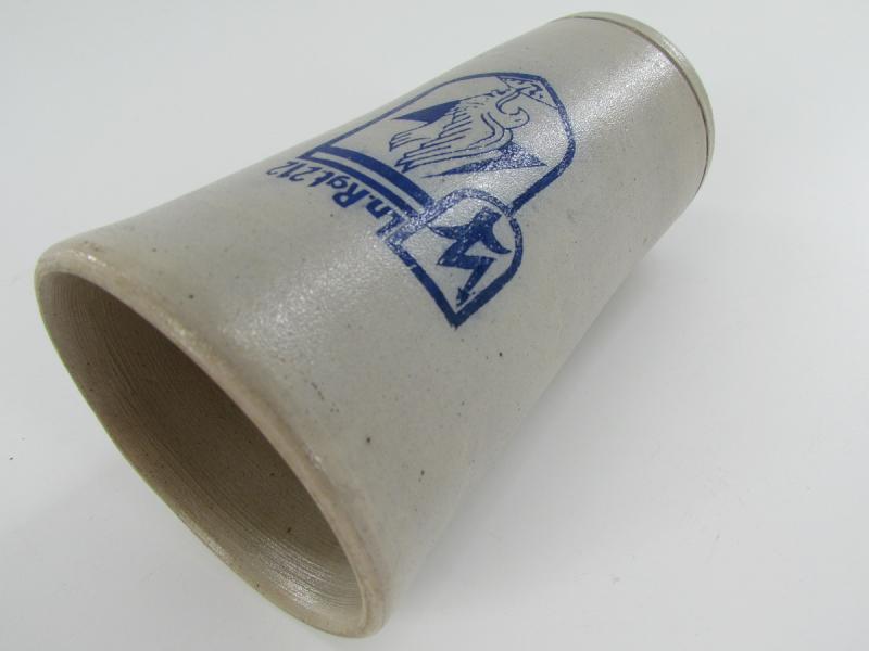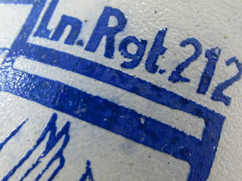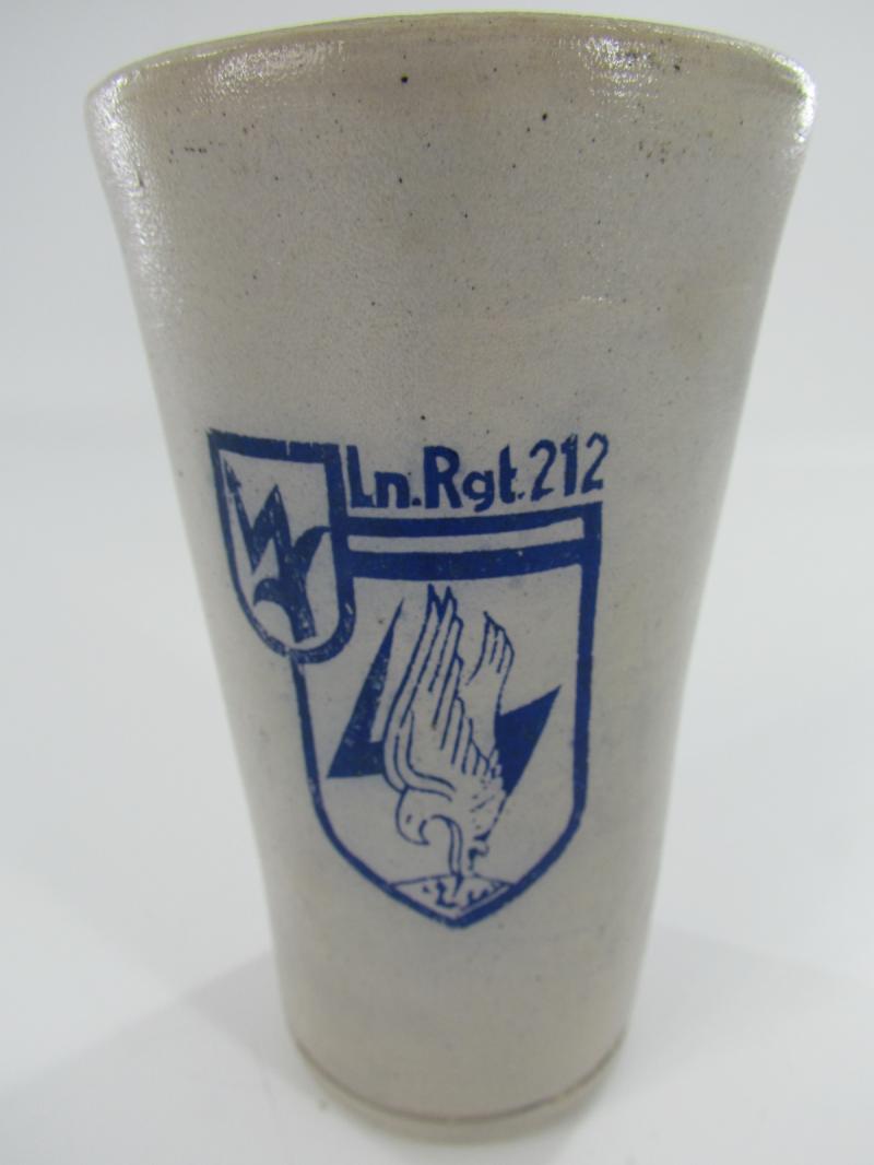 Extremely rare "stone" for wine issued to members of Luftnachrichten-Regiment 212. Dark blue unit emblem of "Ln.Rgt.212" to the front side. Height: 15,5cm. Diameter: 8cm No other markings.