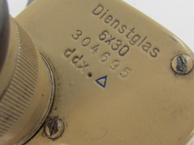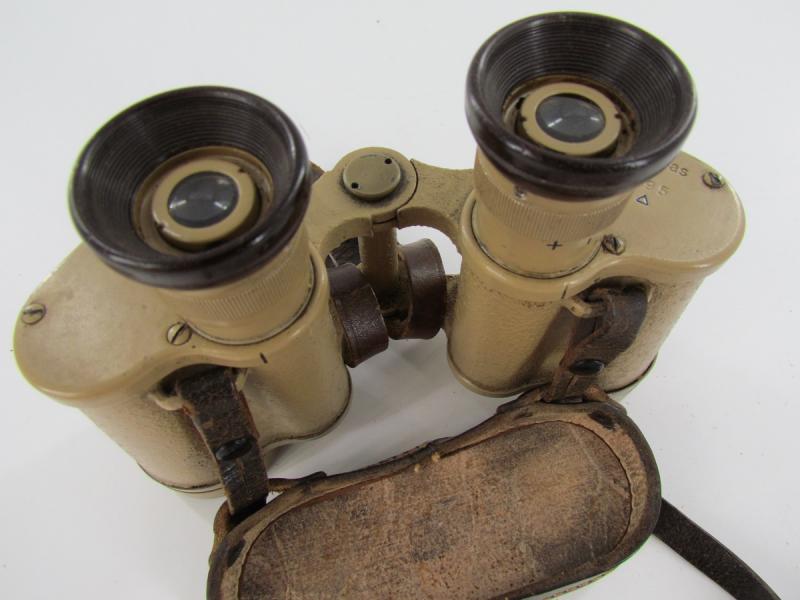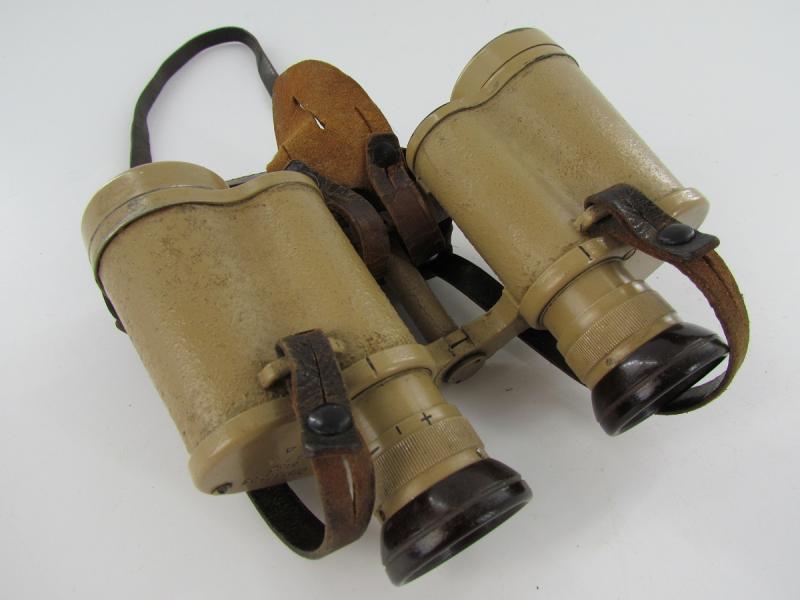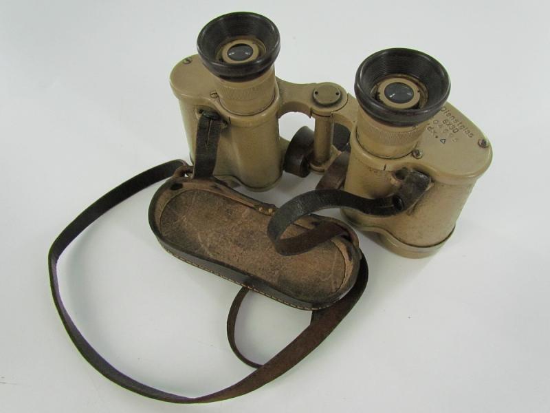 A very nice Tan Dienstglas marked ddx It has his original straps and WaA marked rain shield Strichplatte nicely visible Very clear view