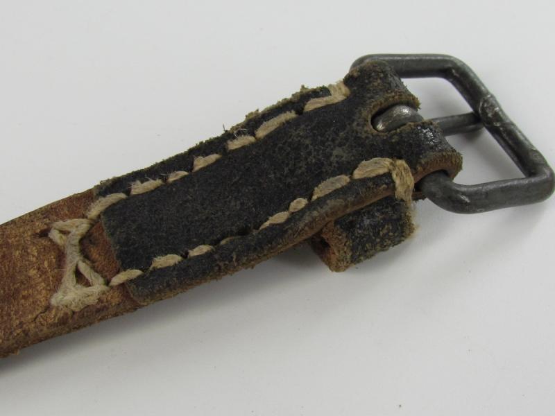 Very nice supple leather equipment strap for multiple purposes. The length is 54,5 cm RB numbered and in a good used condition