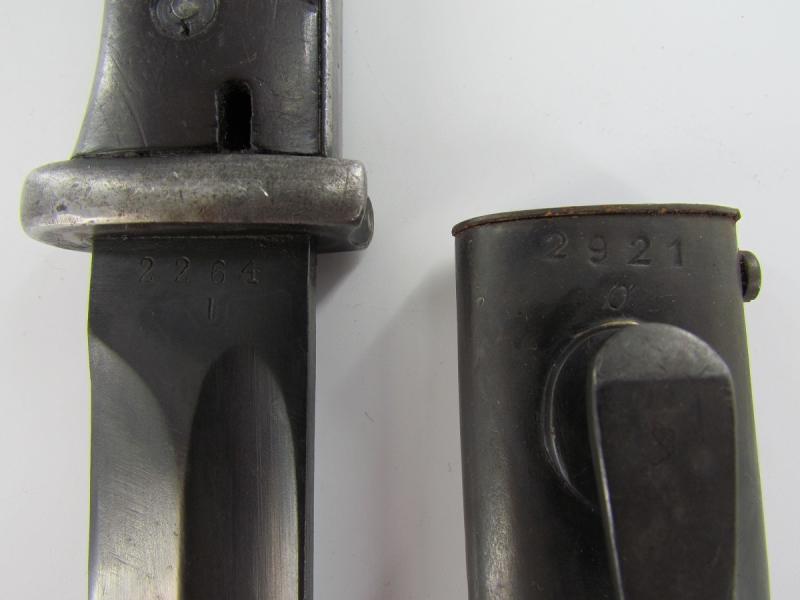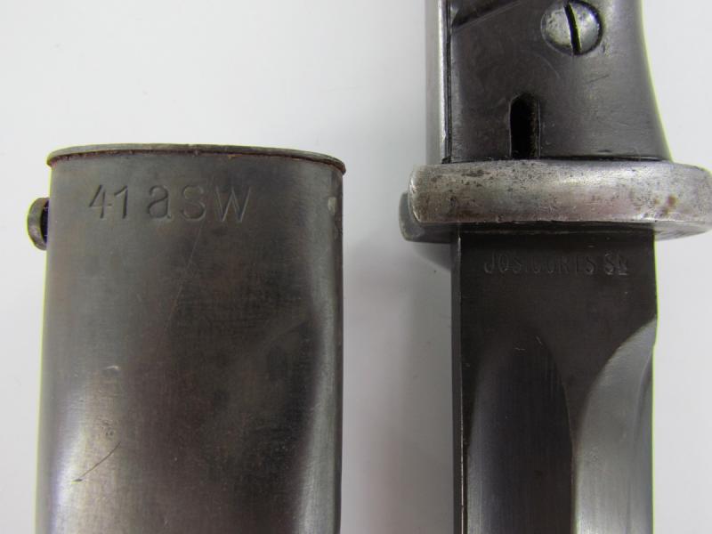 Non matching bayonet marked Jos Corts 1938 indicating production by Josua Corts Sohn, Remscheid. The bayonet is non matching to its scabbard The bajonet has clean bakelite grips Not sharpened