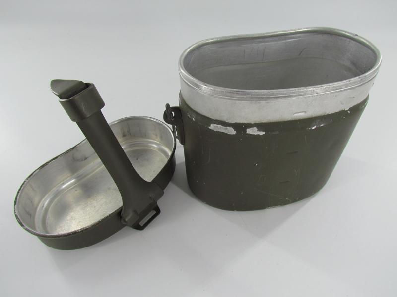 the messkit is made in a early type with early aluminium attachment lugs for the carrying handle on which I could not find a marking.