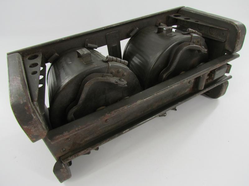 In very nice condition a MG 34/42 Carrier with 2 Drums, each drum can hold 50 rounds, Both are nicely marked jpp also the carrier frame is nicely factory code marked