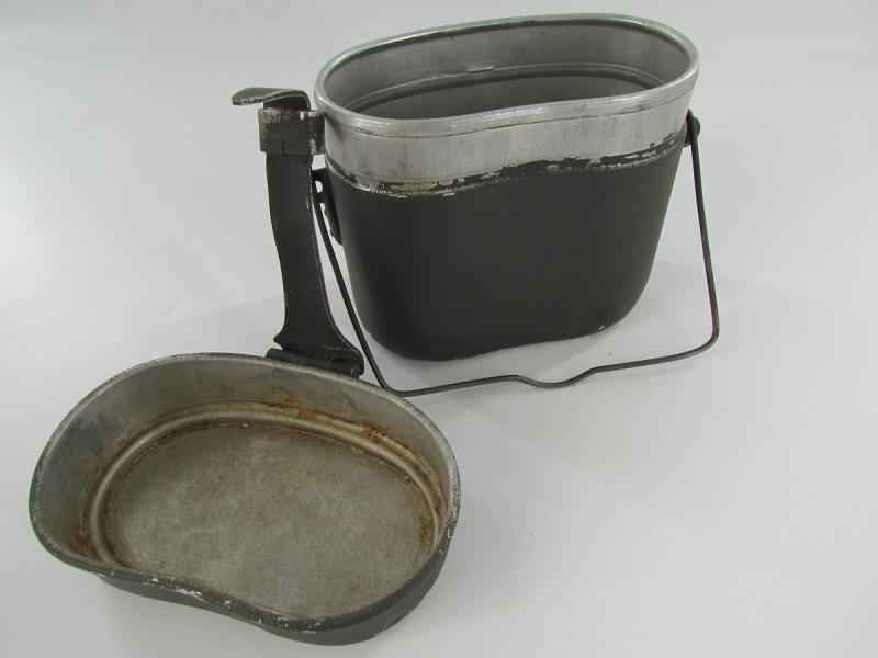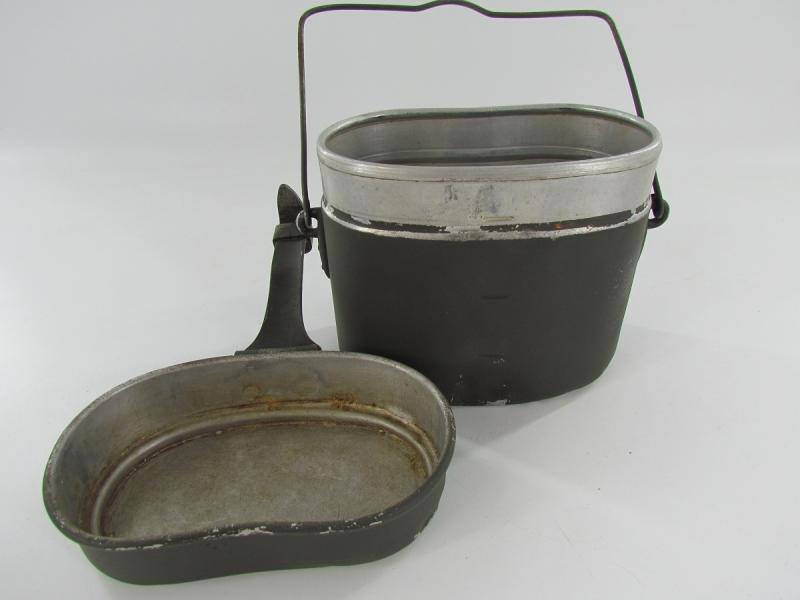 the messkit is made in a early type with early aluminium attachment lugs for the carrying handle on which I could not find a marking.