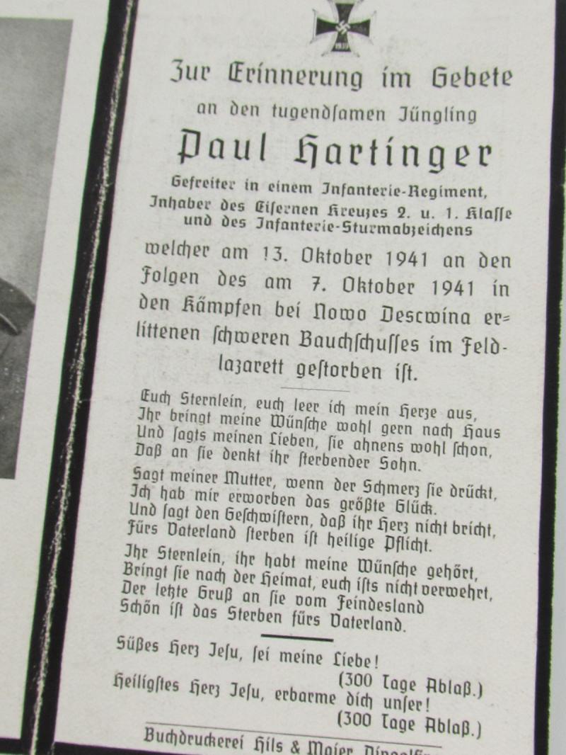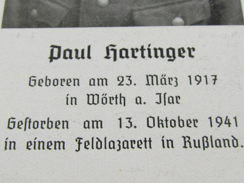Original German Army WW2 DEATH CARD from a soldier killed in Russia