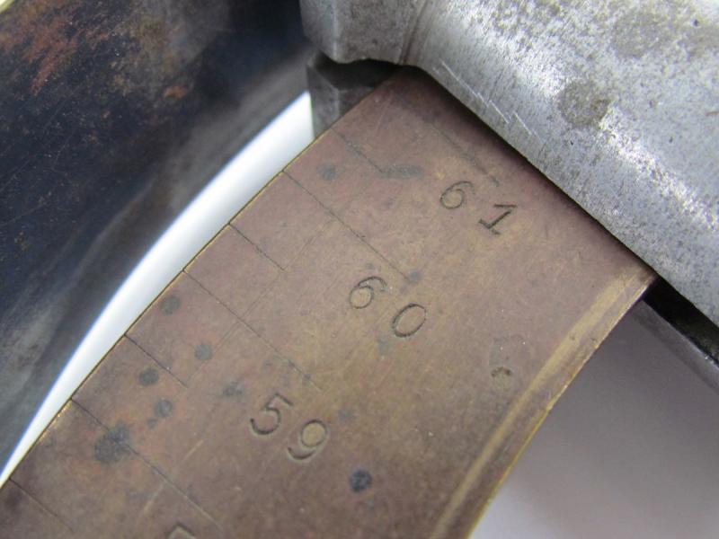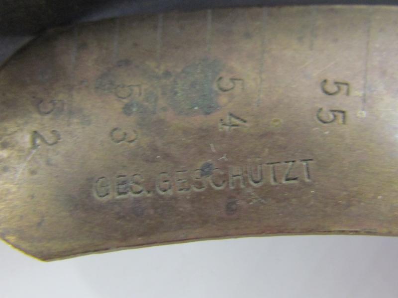 The measurements on the scale are in centimeters and correlate to hat sizes written below on the same scale.