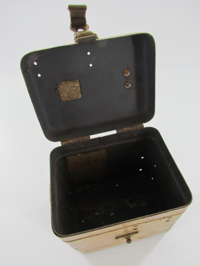 Scarce and sought after original tan painted optic case Interior of can is field gray as is appropriate The innert has sadly been removed