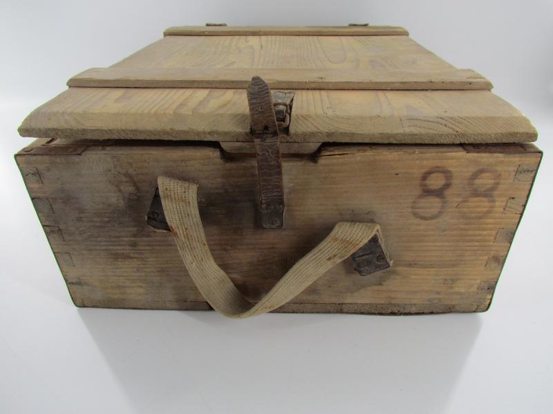 A very nice and desirable K98 wooden ammo crate with the rare cardboard 'Trageschlaufe'.
