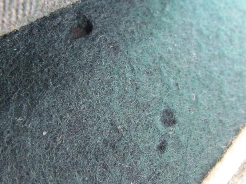 Some small moth damaged in the dark green felt cloth