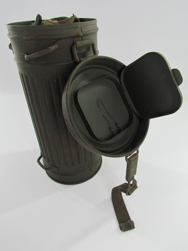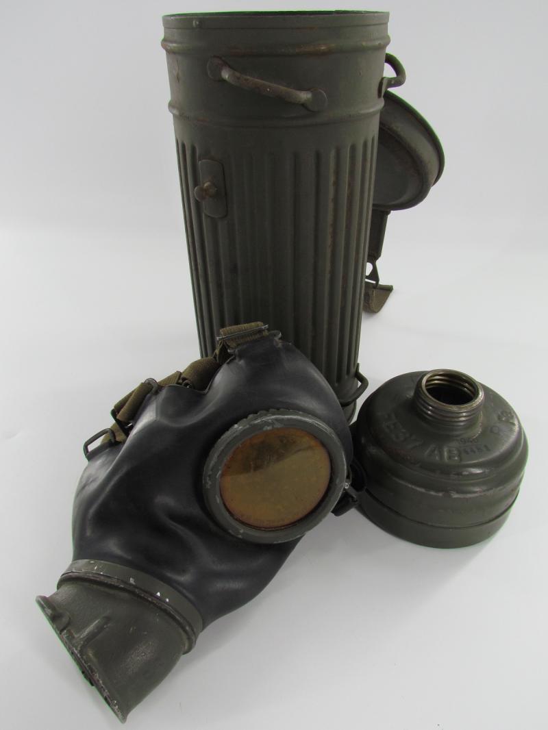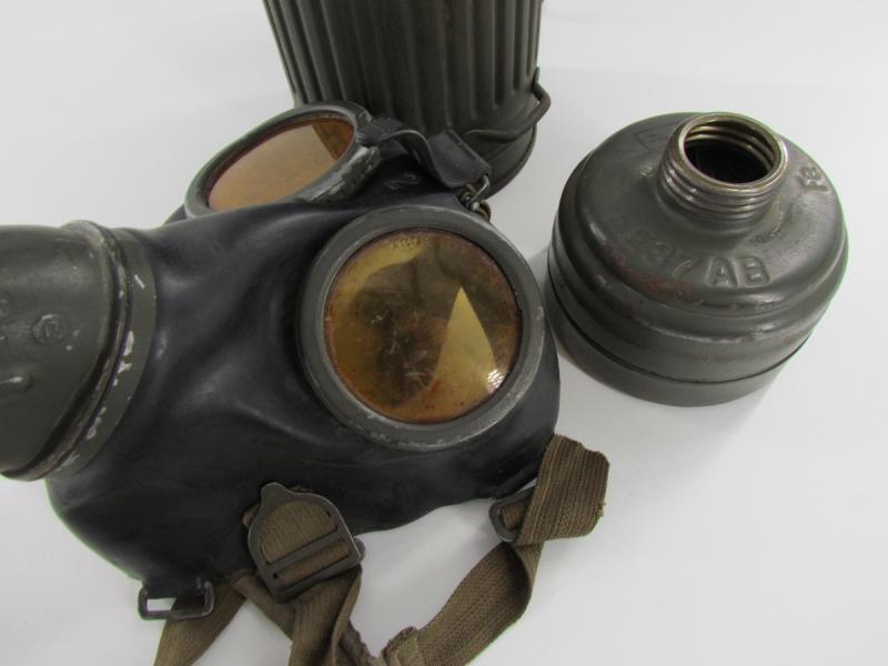 A very nice gasmask and cannister The cannister comes without straps . The lower straps on the gasmask are not present The cannister has a very bright coulor and almost no ware to it