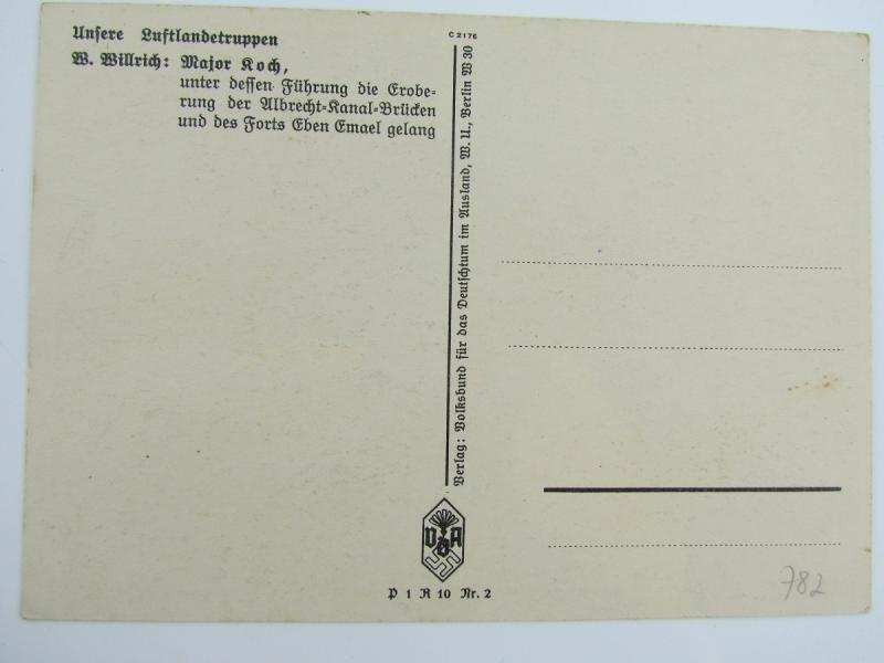 Paratrooper Major Koch shown wearing Knight’s Cross of 1939 Iron Cross awarded for Valor at Fort Eben-Emael