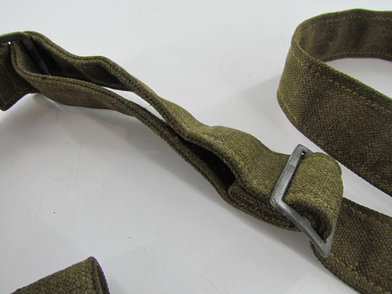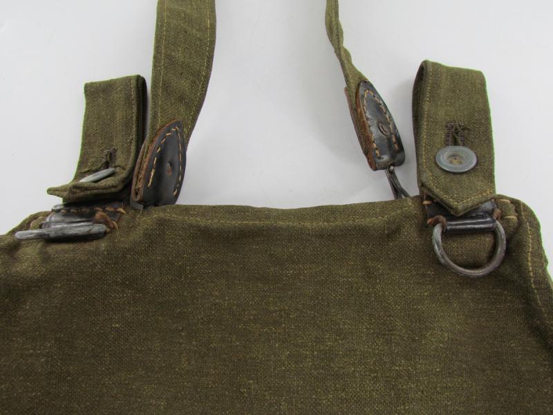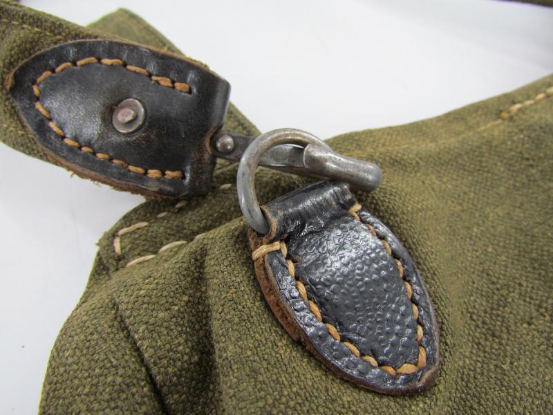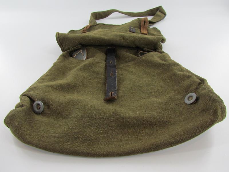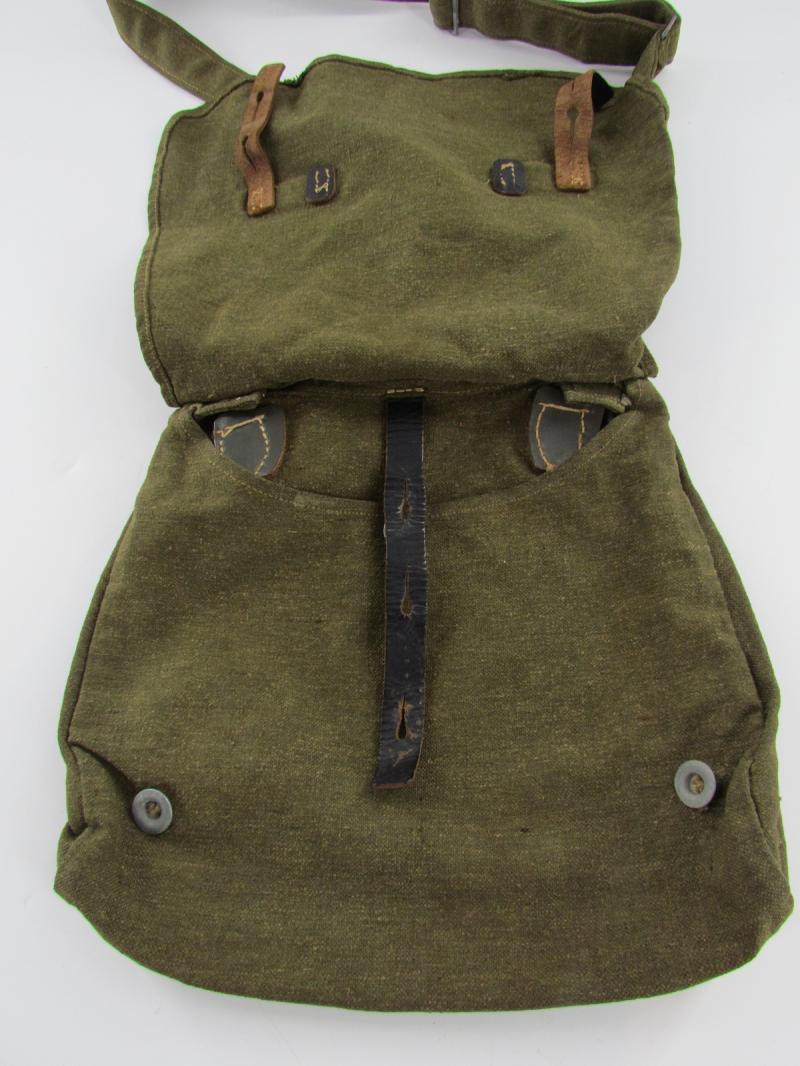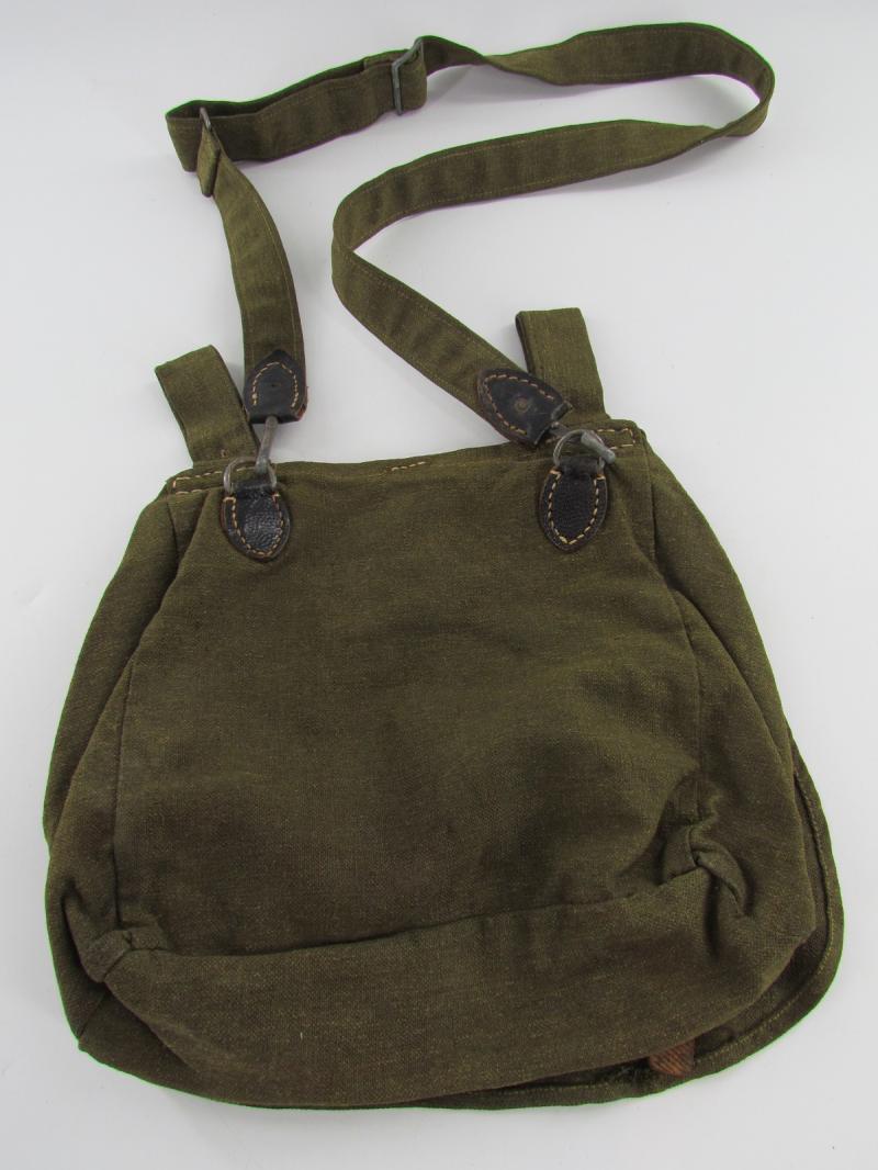 A very nice lightly used breadbag with its original carrying sling! The middle hook has been periodly removed and sewn shut which is an intresting feature! Great for any mannequin or collection!