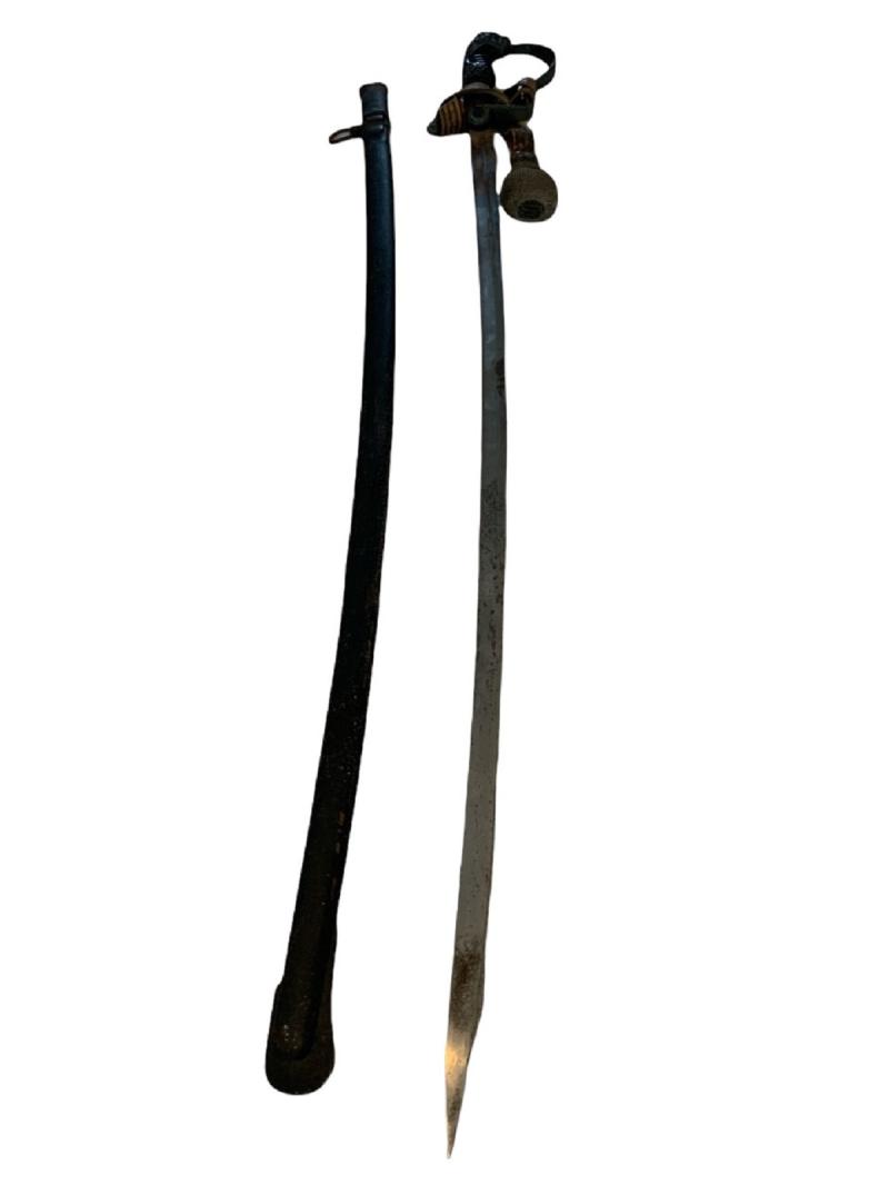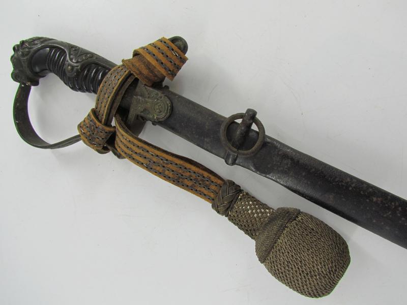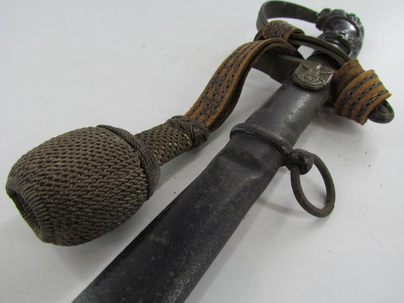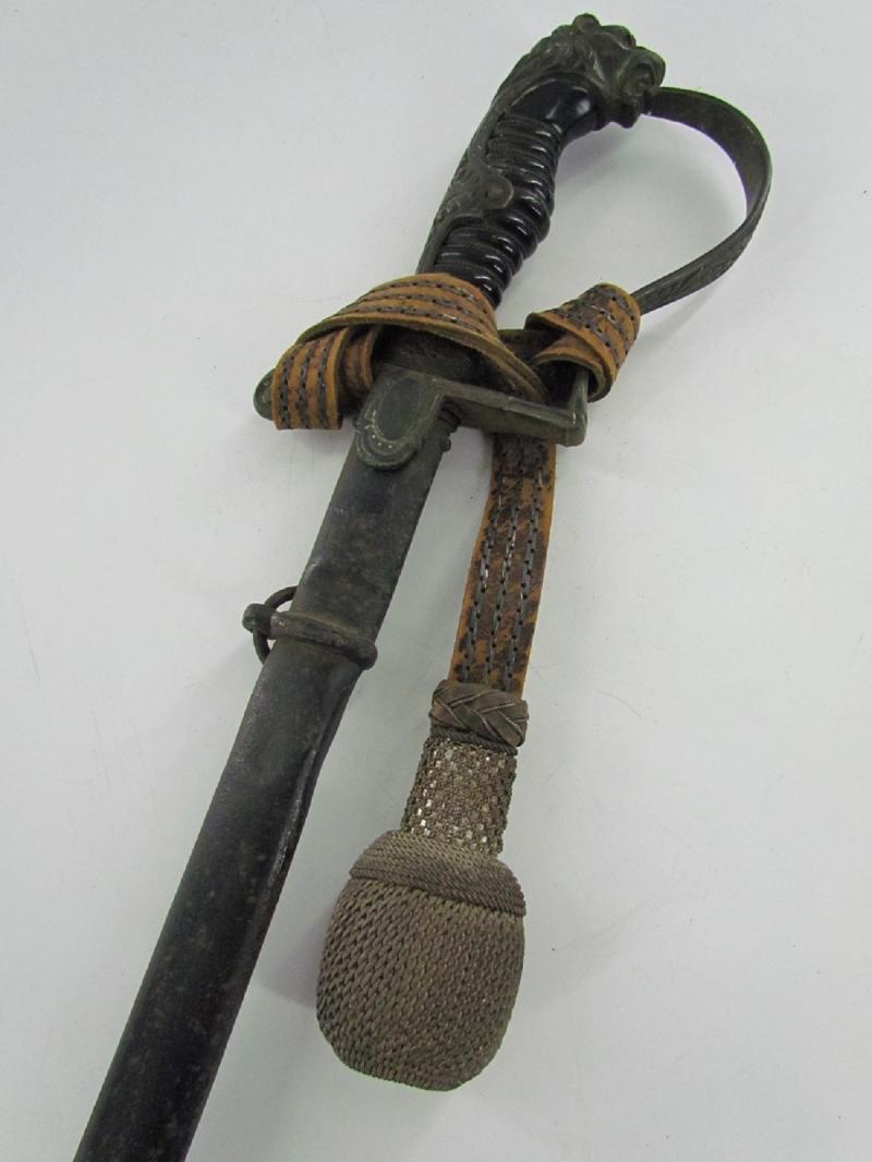 Wehrmacht sword with“Löwekopf” Head In its original scabbard. Non maker marked sword in used condition. Sold as been found
