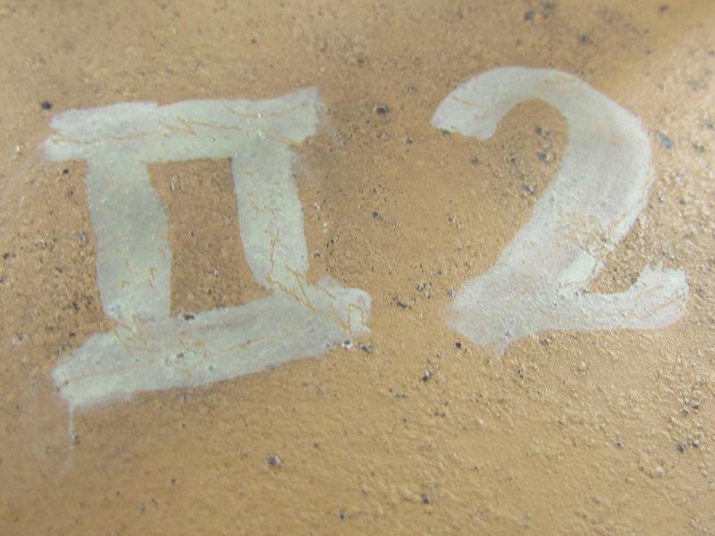 The drum has white paint markings on it which indicates the troop it belonged too, ( in this case, 2e zug ) and shows small signs of wear.