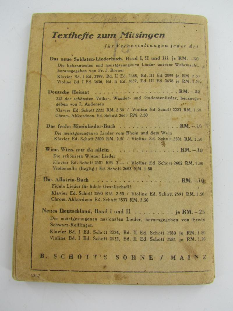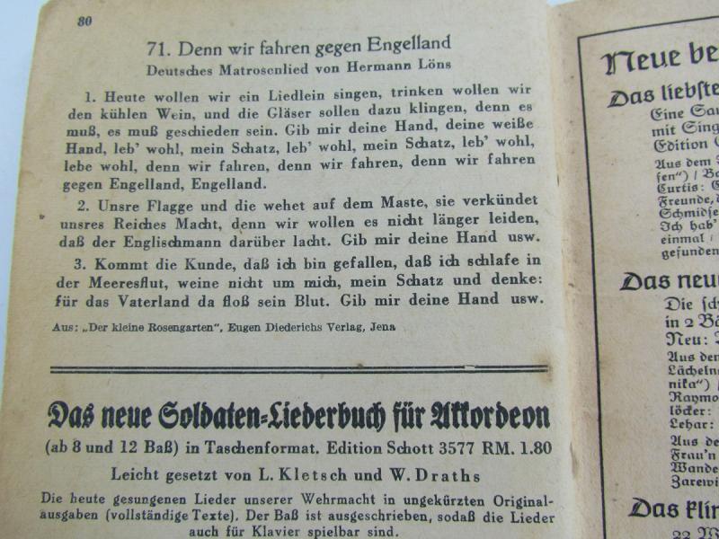 The new Soldier-Song-text Book: The most famous and most popular songs of the Wehrmacht” Part 1 These contained marching songs and were kept in the pockets of the soldiers. Used but not abused condition