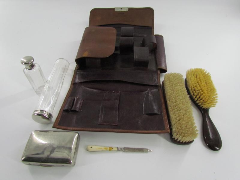 Leather Suitcase with Grooming Kit from an German officer in very nice condition.