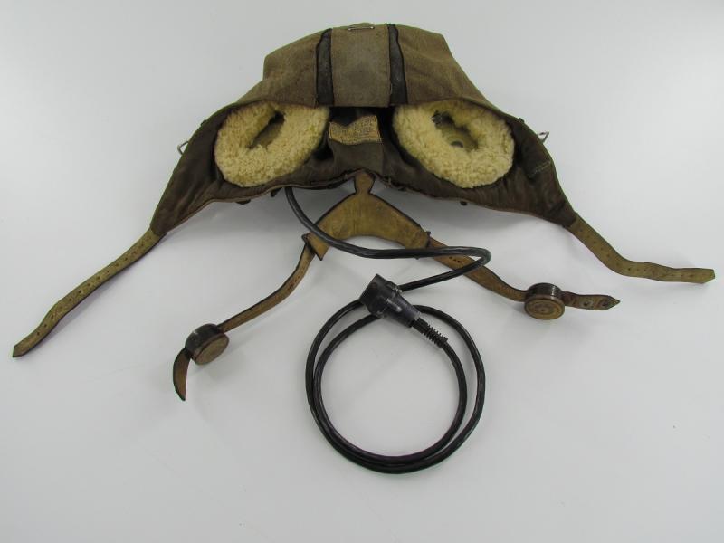 The 'LKpS101' Summer Flight Helmet model flight helmet was designed for summer wear and was outfitted with radio equipment as used by fighter pilots and bomber commanders, these were mostly used by fighter pilots.