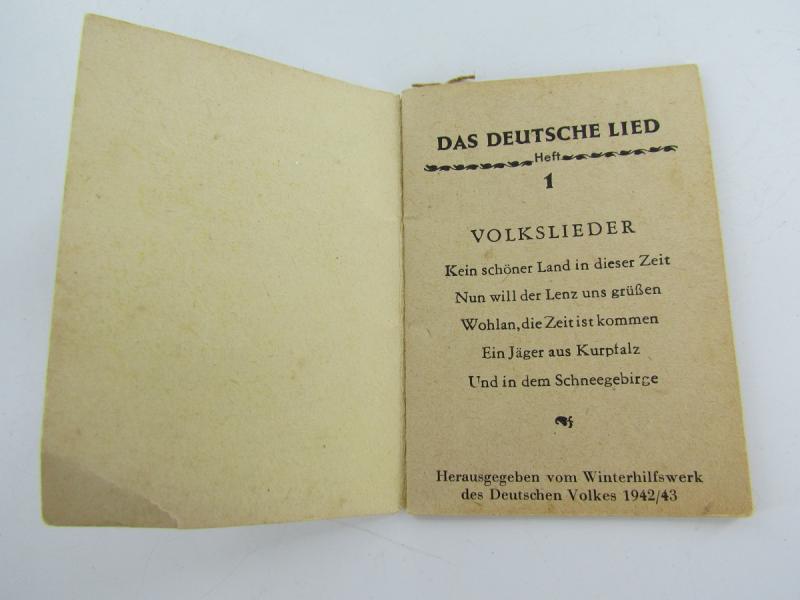 Published by o. O., Winterhilfswerk des deutschen Volkes, /43, 1942 Original WW2 German / Third Reich WHW song booklet, In very nice condition , SIZE: 7 x 5 cm