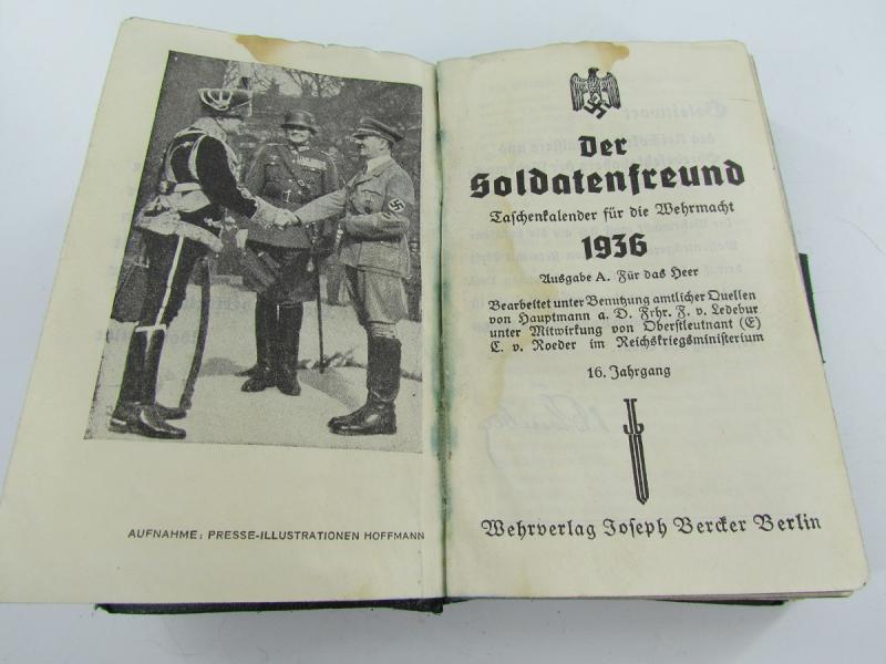 Very nice and hard to find Wehrmacht Heer pocket size kalender of the year 1936. Issued and has some small water damage
