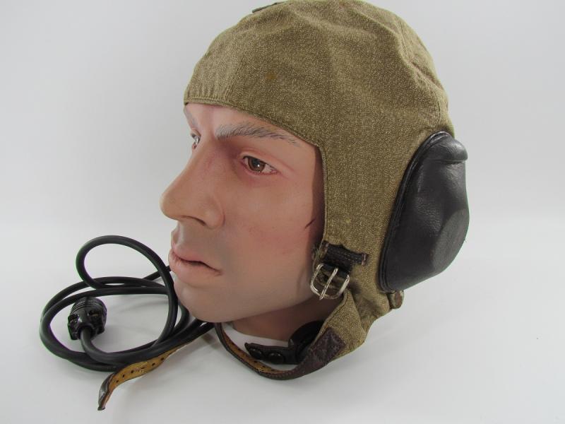 The 'LKpS101' Summer Flight Helmet model flight helmet was designed for summer wear and was outfitted with radio equipment as used by fighter pilots and bomber commanders, these were mostly used by fighter pilots.