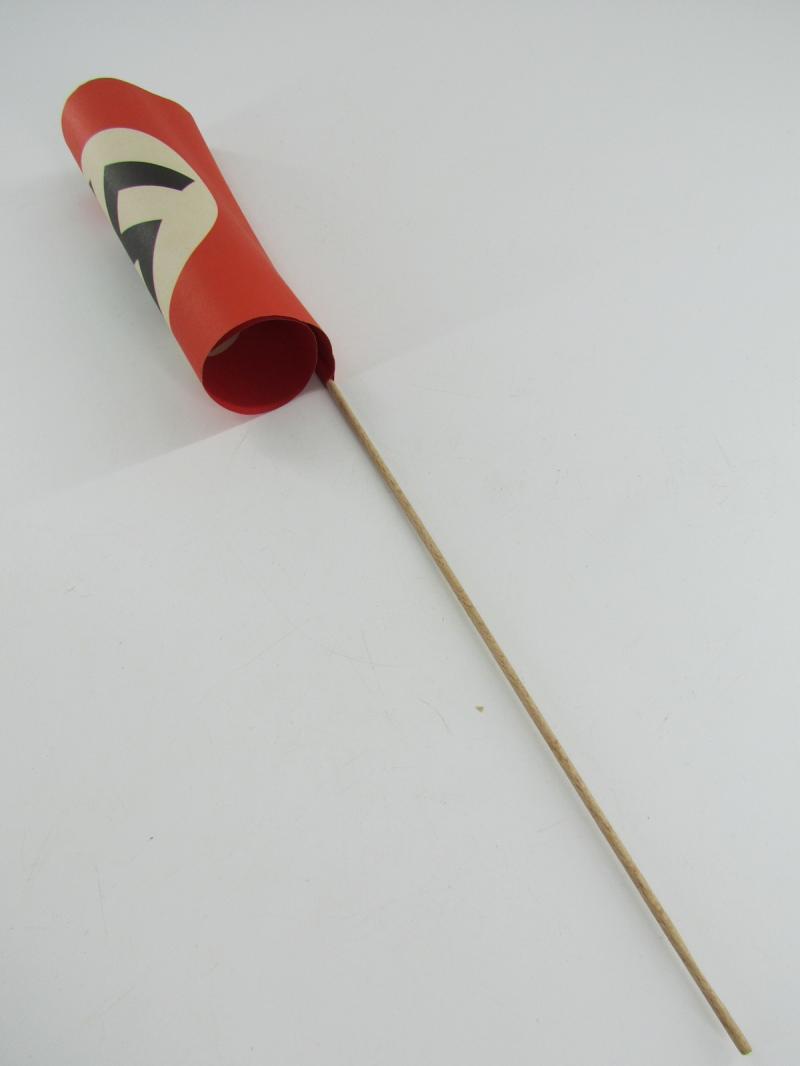 The small sized double-sided, printed paper, flag measures approximately 17 x 20,5 cms and is mounted on a 40cms long sized wooden pole.