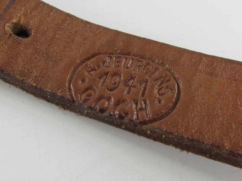Very nice supple leather equipment strap for multiple purposes. re-isseud and re-stamped by the Czech Army The length is about 54,5 cm Maker marked and in a very good condition