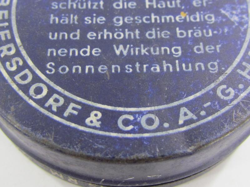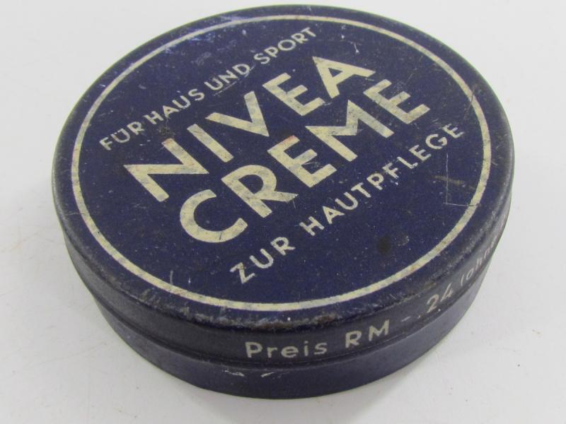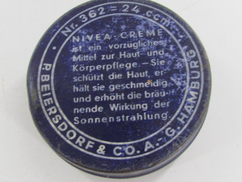 Very nice empty metal can Nivea skin "creme" cream You can find the metal can in the new personel item book "Ruhe Tag" from "Schiffer" in very good condition.