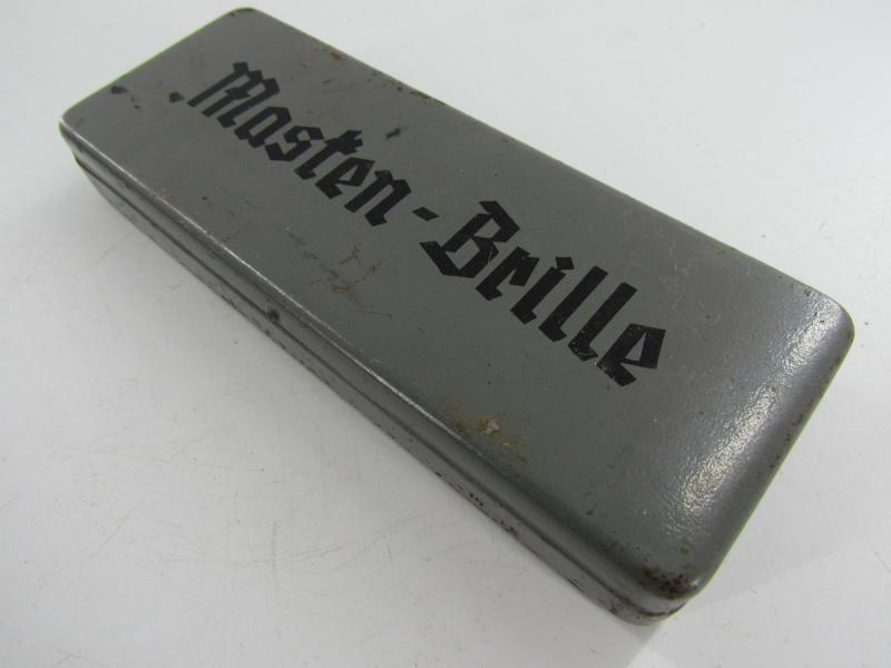 Nice original case for the Maskenbrille These glasses where to be worn underneath the Gasmask in case of a gas attack Nice to complete your gasmaskenbrille