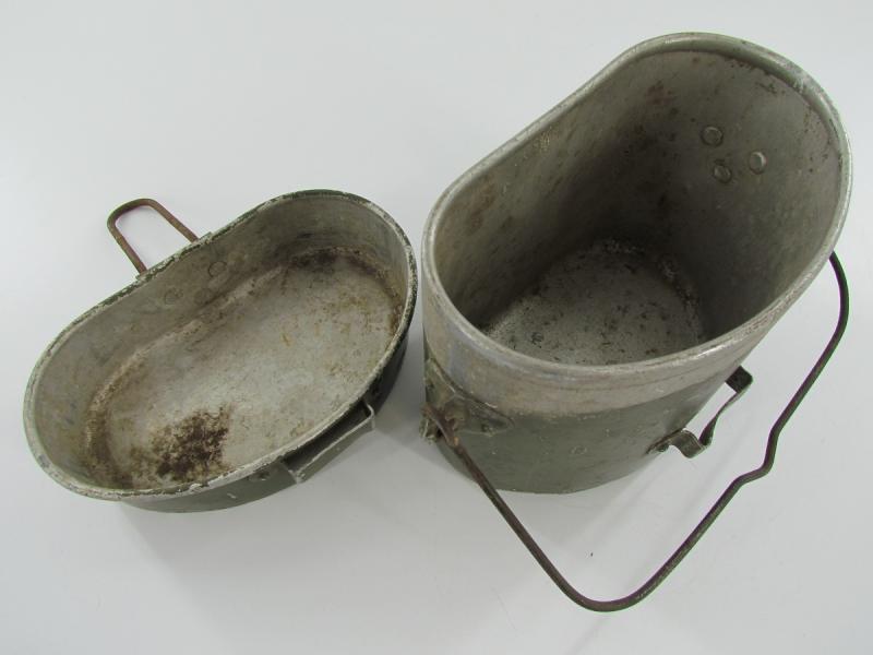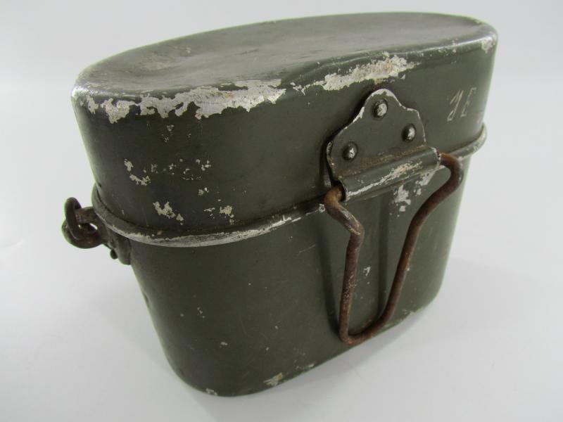 Wehrmacht reissued Italian Mestin Very nice Italian mestin, reissued by the Wehrmacht It shows age and lots of patina and would be a nice addition to a combat display In used but very good condition.