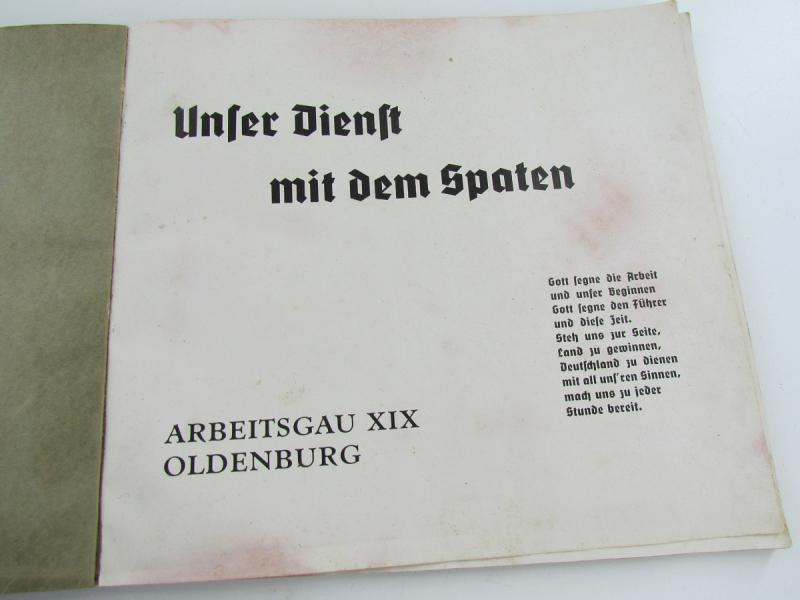 Unser Dienst mit dem Spaten Arbeitsgau XIX Oldenburg. Published by Schulzesche Verlagsbuchhandlung Rudolf Schwark, Oldenburg, 1938. 23,5 x 21cm In a very good condition