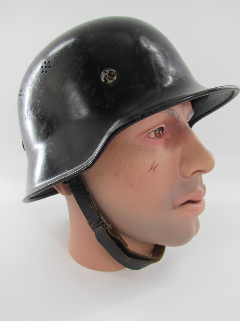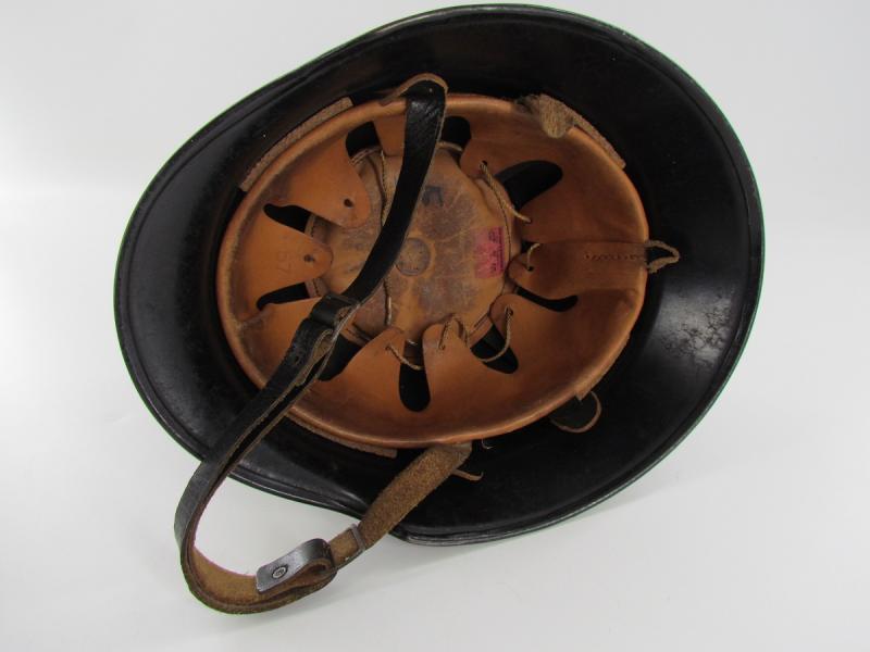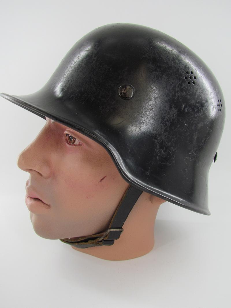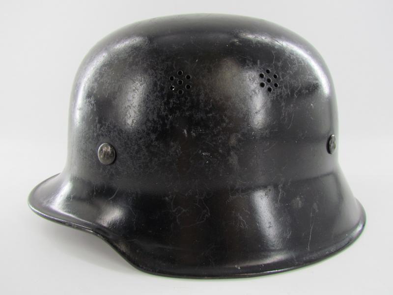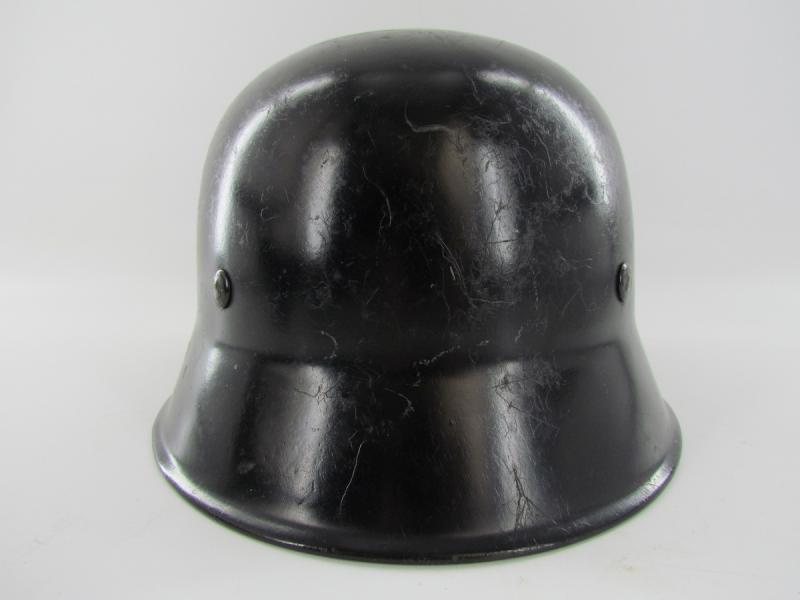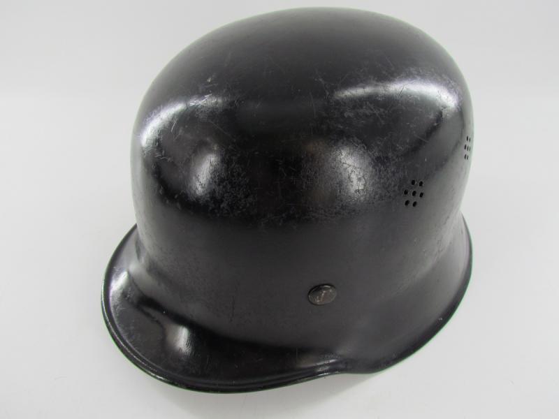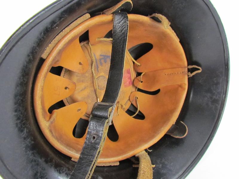 The civic M34 Fire Police German helmet has the original factory black satin paint