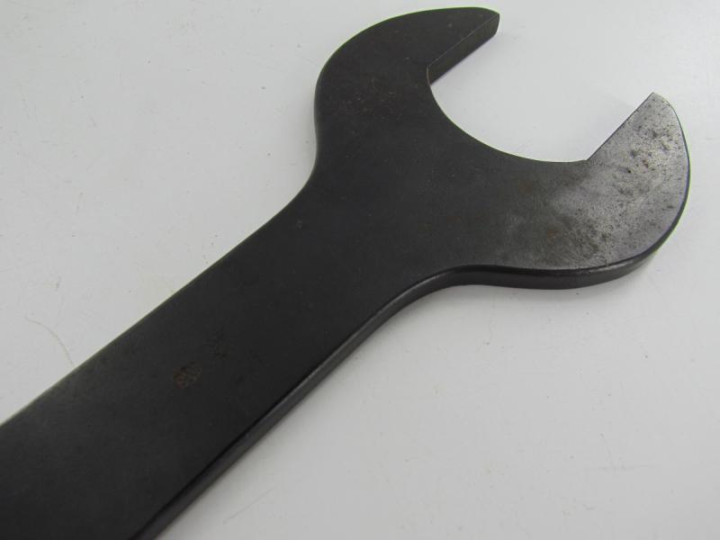 The designers of the MG13 reduced the number of size variants for the nuts on the gun to two. Thus it was issued with this double-headed spanner, with which any adjustments could easily be made by the gunner. This set a standard and was also issued for the MG34.
