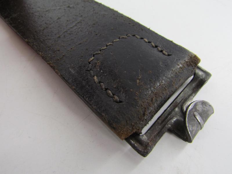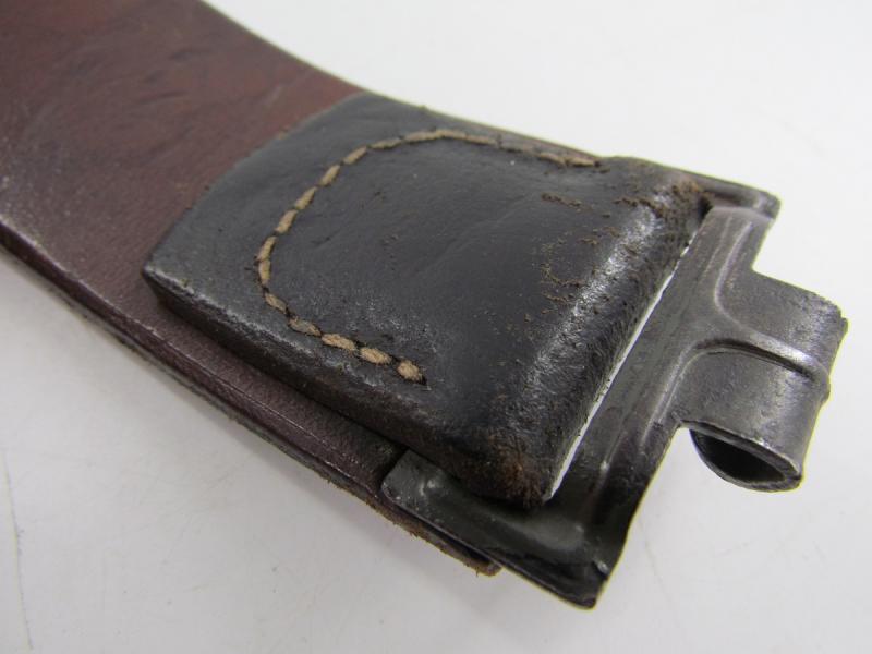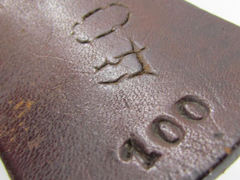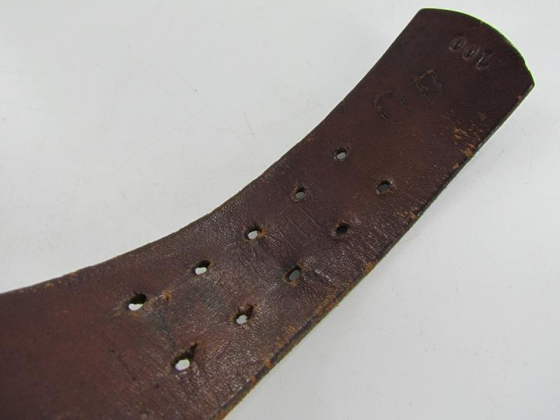 A nice standard issue leather equipment belt in used condition. The belt is 100cm long No further markings visible.