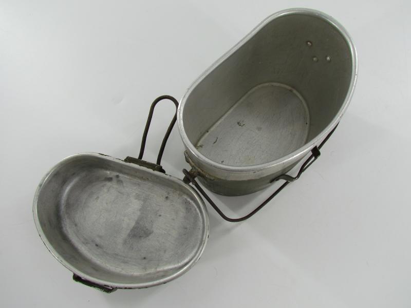 Wehrmacht reissued Italian Mestin Very nice Italian mestin, reissued by the Wehrmacht It shows age and lots of patina and would be a nice addition to a combat display In used but very good condition.