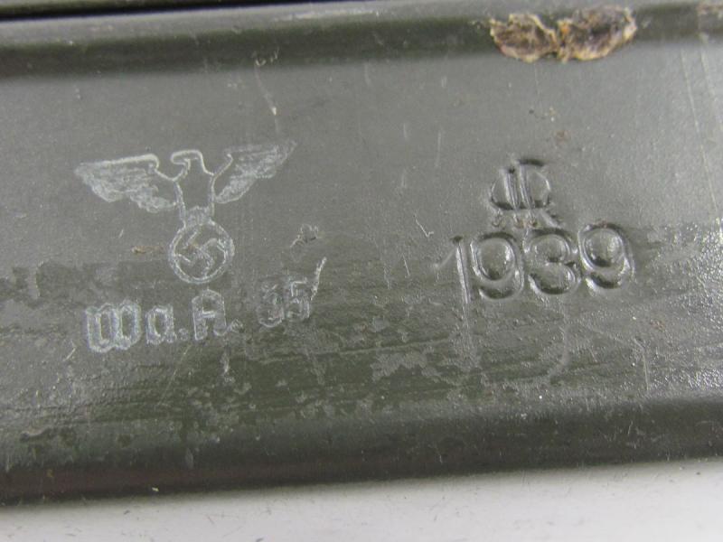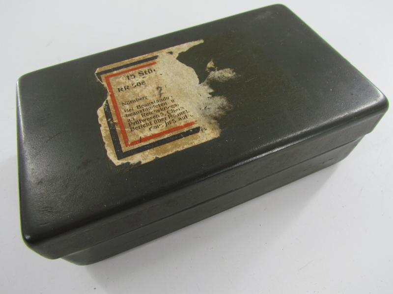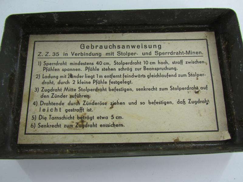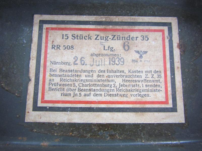 Zug-Zünder 35 fuze case dated 1939 complete with safety pins and unknown tool that was found together with the case. In a used but very good condition