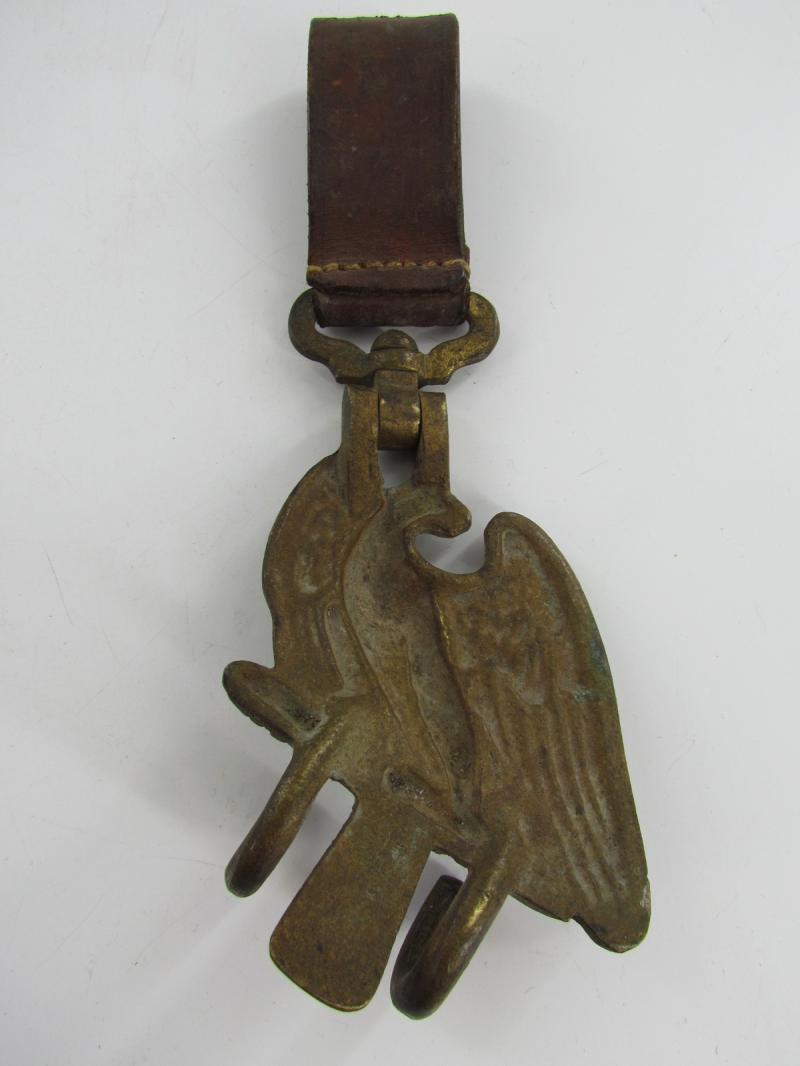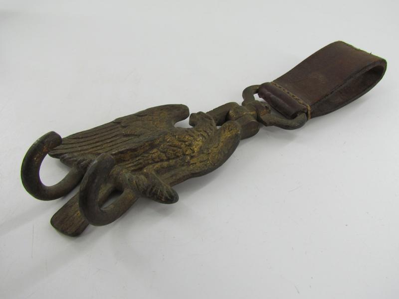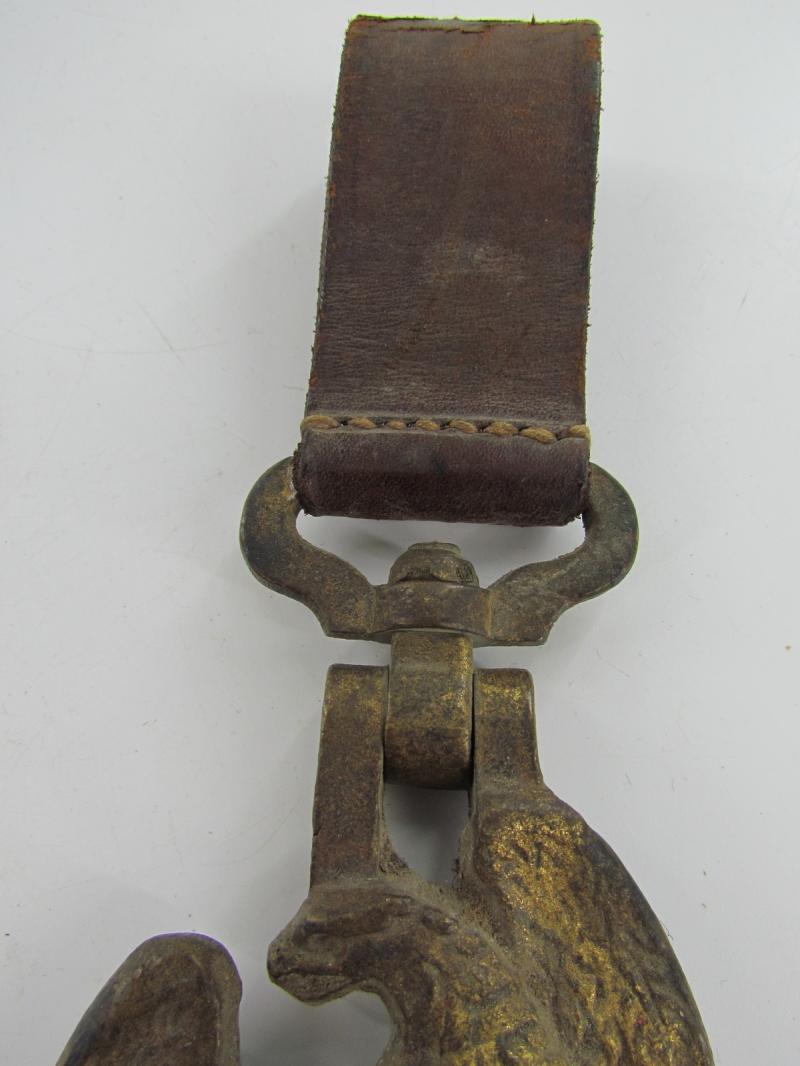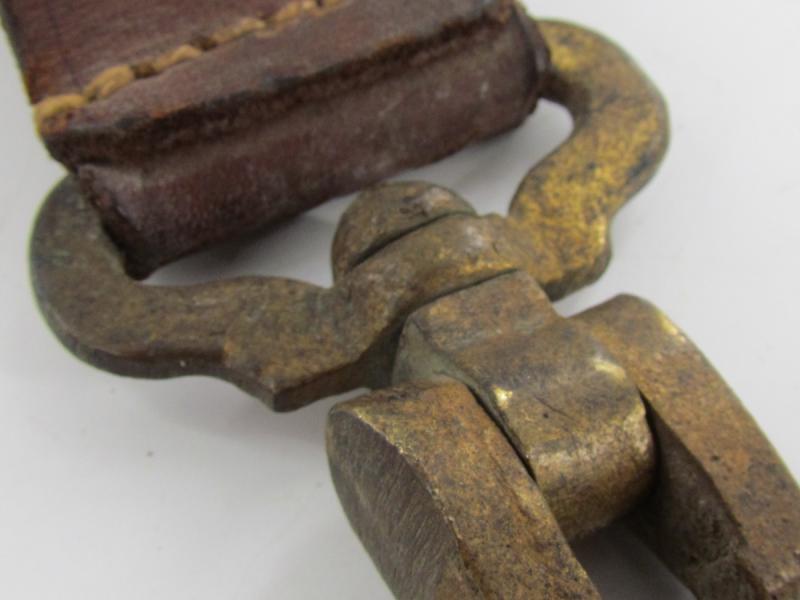 Hitler-Jugend Snare Drum Hook Very nice brass hook with leather belt loop for a Hitler-Jugend snare drum In used but good condition.