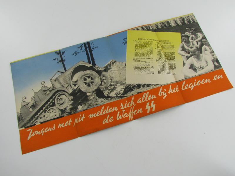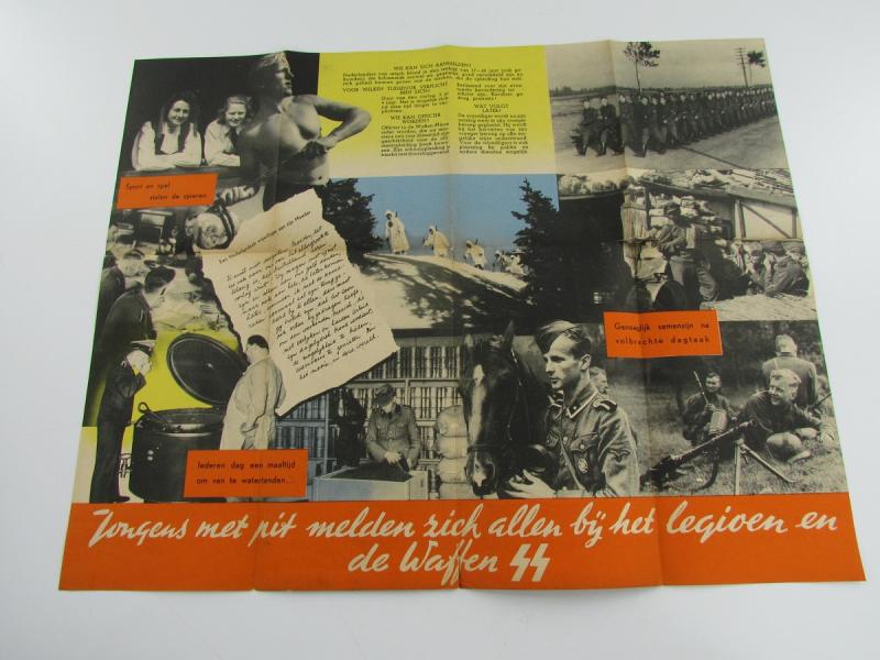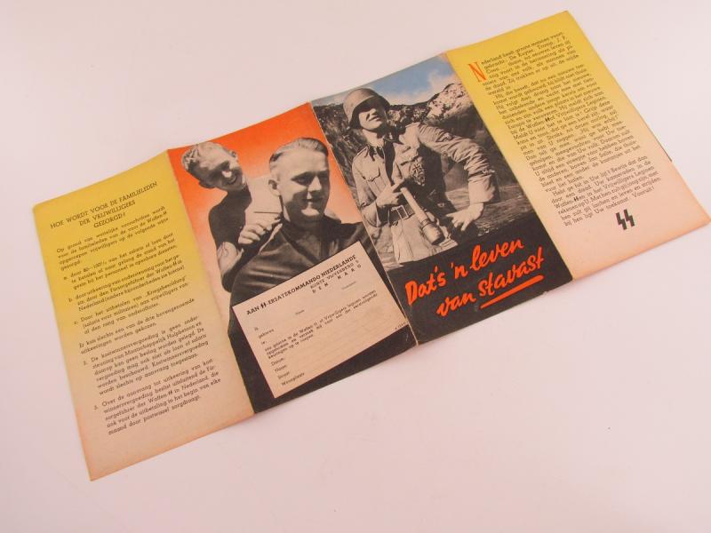 This is a nice original Dutch Waffen-SS recruitment flyer/poster: "Dat's 'n leven van stavast", used to recruit Dutch men for the Dutch volunteer legion and/or Waffen-SS