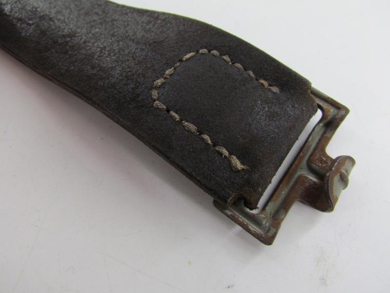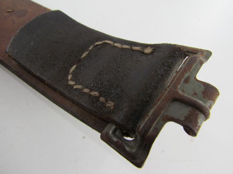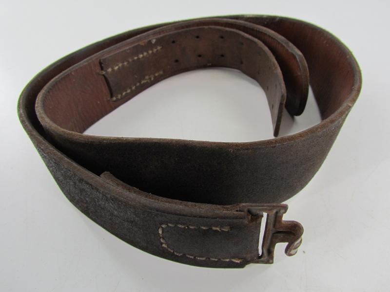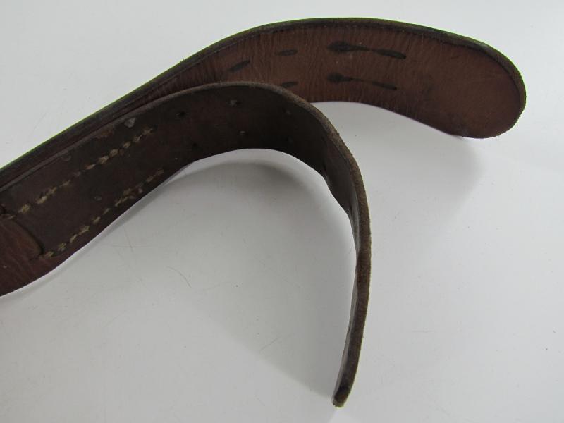 A nice standard issue leather equipment belt in used condition. The belt is 100cm long No further markings visible.