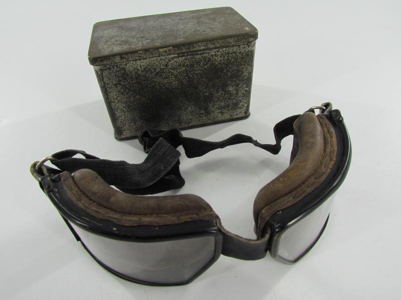 A very nice pair of pre war goggles as issued to motorcyclists in the Wehrmacht and Waffen-SS