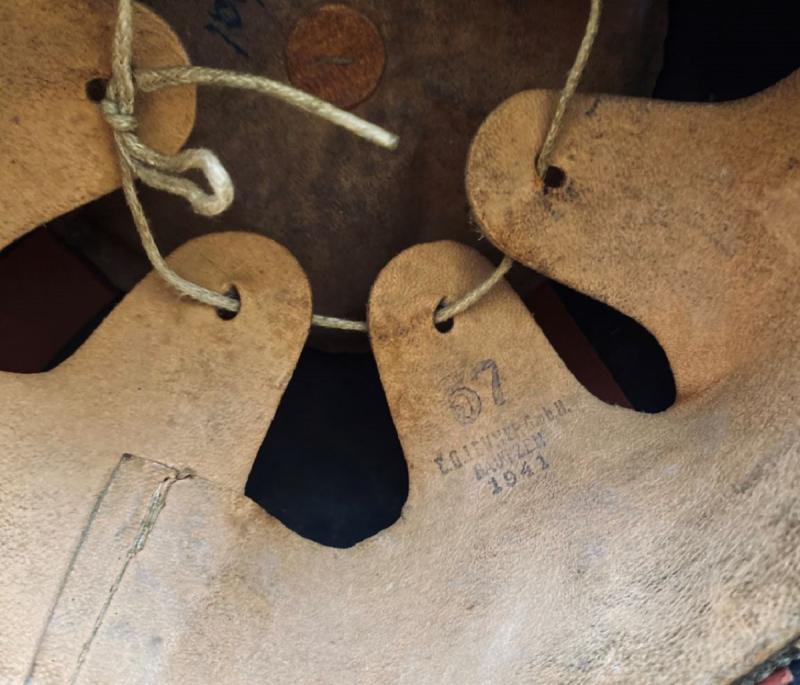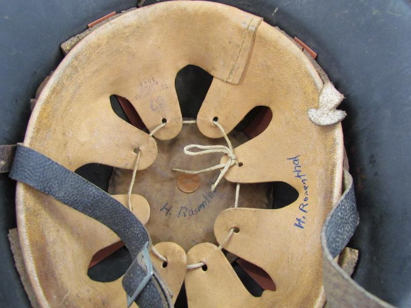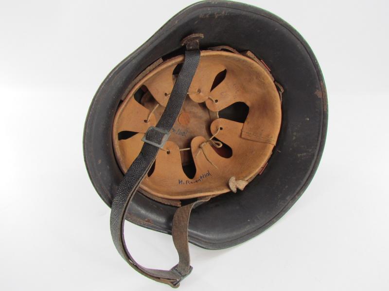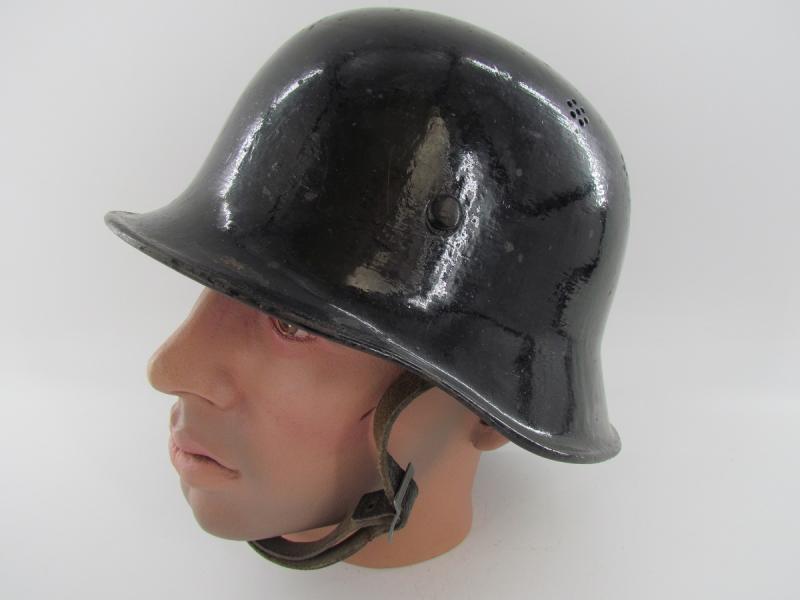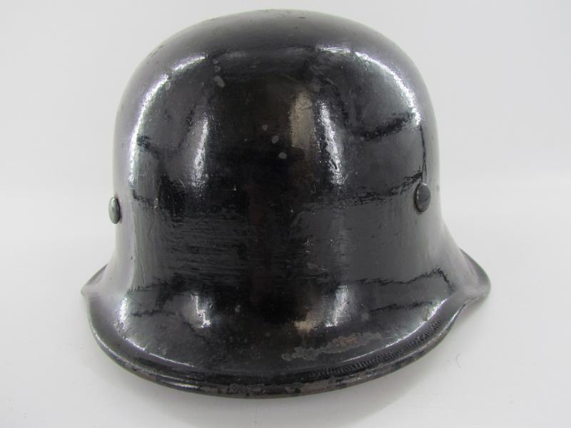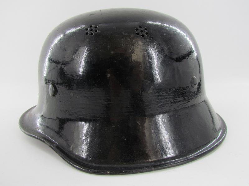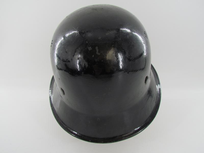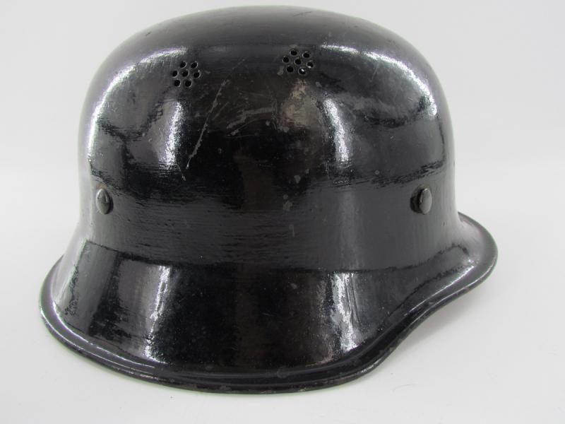 The civic M34 Fire Police German helmet has been repainted once ( could be period done )