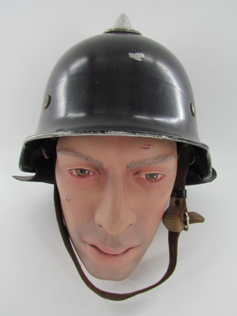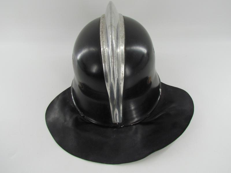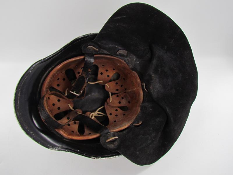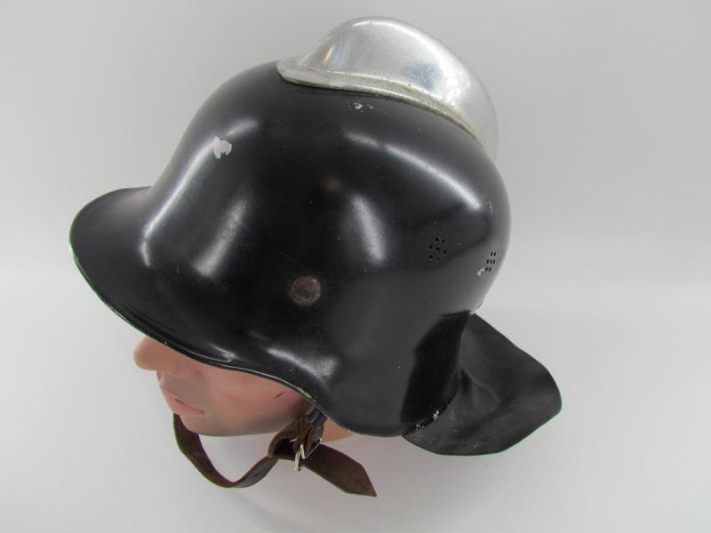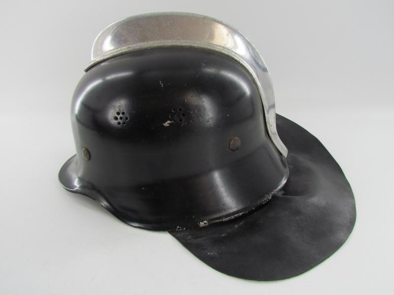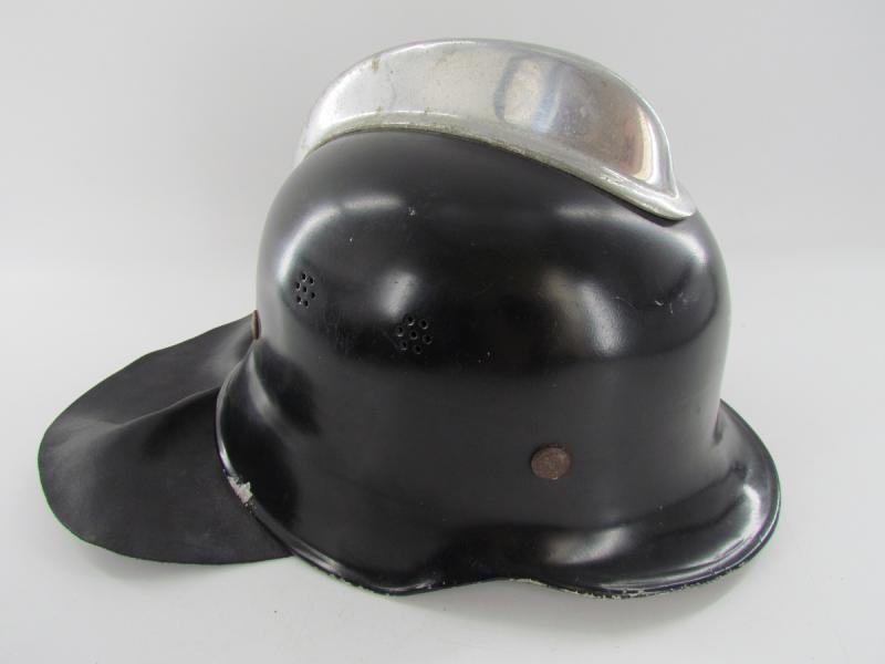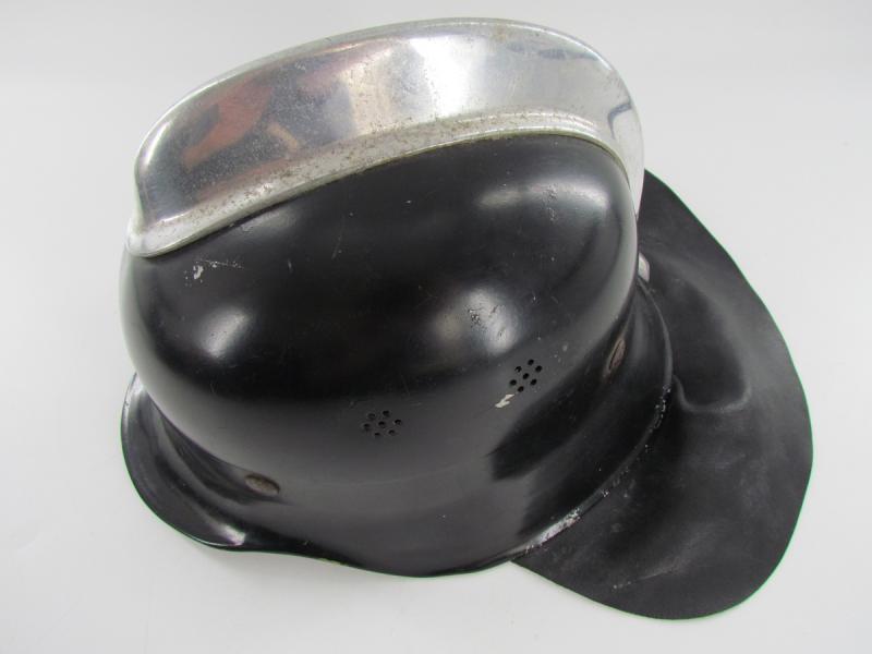 The alluminum M34 Fire Police German helmet has the original factory black satin paint